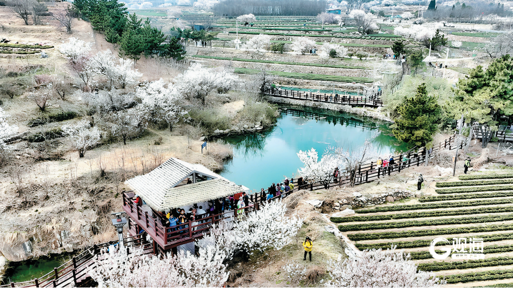 崂山区王哥庄街道庙石村的樱桃花迎来最佳观赏期,层层叠叠,如雪似雾,吸引了众多市民游客前来踏春赏花。 王 雷 摄