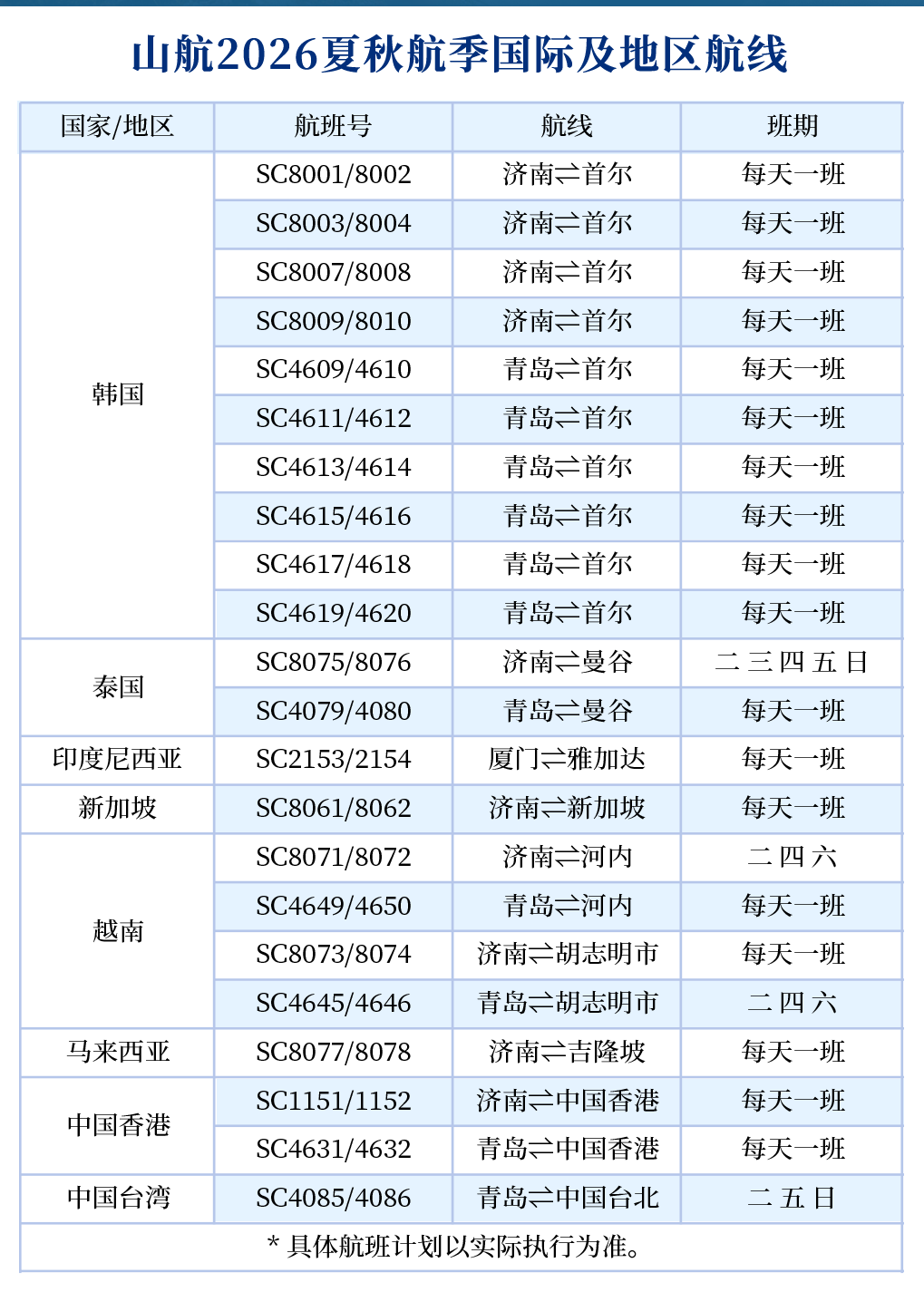 青岛日报社/观海新闻3月26日讯 3月29日起,全国民航正式进入2026年夏秋航季。山航将新增、加密多条国内、国际航线,同步升级“山航快线”,为旅客提供便捷、高效的出行体验。