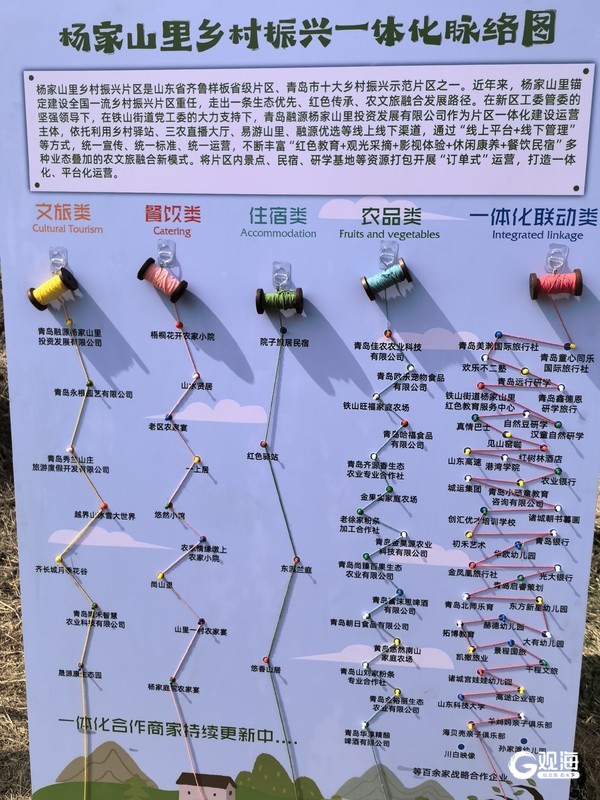 活动现场还举行了跨区域文旅联动“山海相连”一体化精品旅游线路及农品互推互送合作签约仪式,打破单一景点限制,将杨家山里的景点与市区优质文旅资源有机串联,实现山村与海景有机融合,为游客提供一站式旅游攻略。仪式上,“山里mall”商业综合体乡创合伙人招商计划启动,旨在搭建平台吸引更多创客扎根乡村,丰富乡村文旅业态,为乡村旅游注入源头活水。“跨区域文旅联动线路和农品互推互送合作,是我们整合资源、拓宽渠道的重要举措,把一体化运营触角延伸至全区一体化联动运营。未来,我们将继续深耕品质、提升服务,让杨家山里的‘颜值’转化为实实在在的‘产值’。”青岛融源杨家山里投资发展有限公司负责人宋苗苗说。