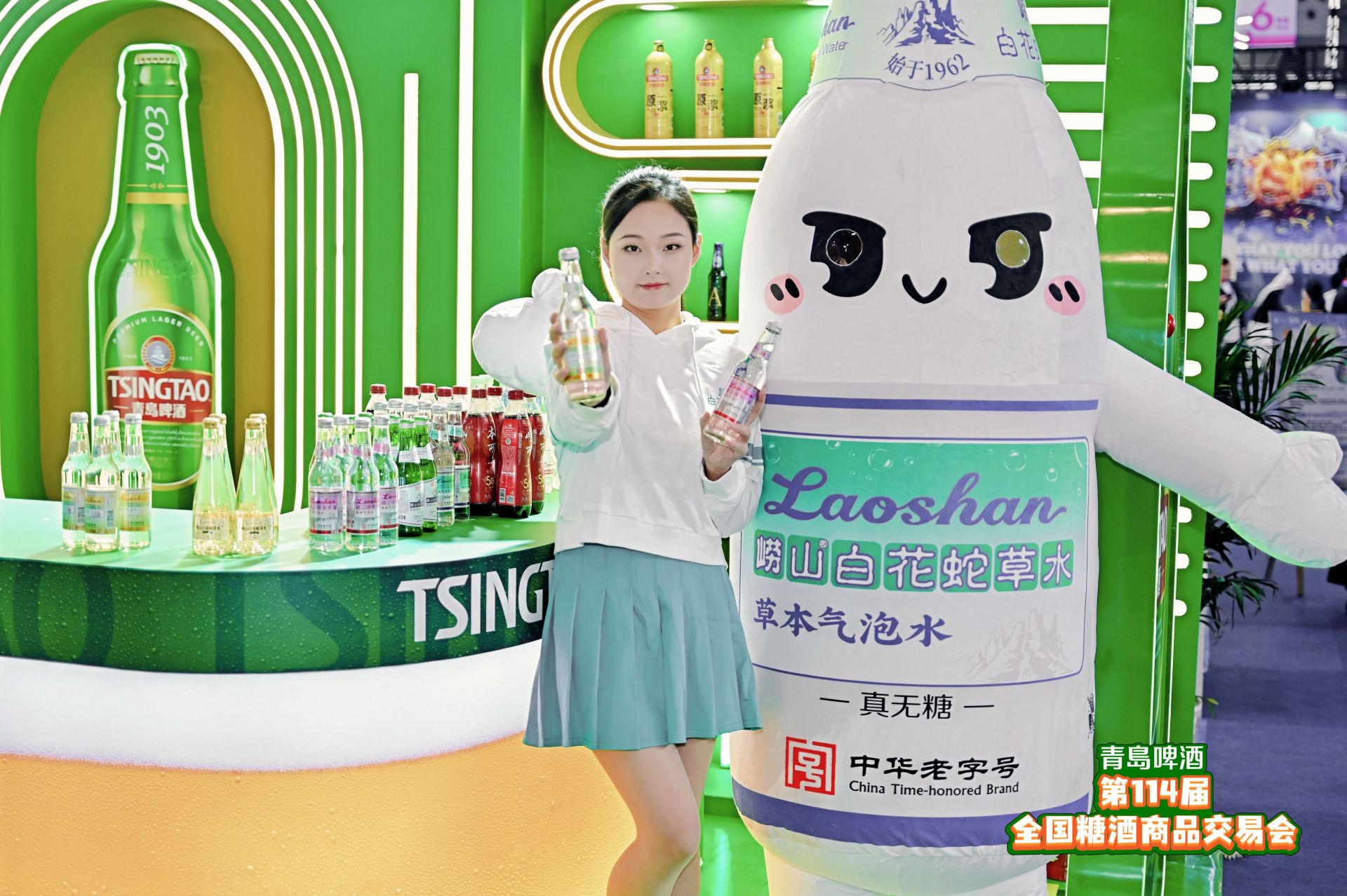 青岛日报社/观海新闻3月26日讯 3月26日,第114届全国糖酒商品交易会在成都盛大开幕。青岛饮料集团携旗下多款核心产品精彩亮相,以“崂山三绝”——崂山白花蛇草水、崂山矿泉水、崂山可乐、构筑经典阵容。与此同时,崂山草本气泡水家族迎来全新成员:接骨木莓风味与金银花薄荷味两款草本气泡水正式首发,凭借草本创新风味与天然健康理念,迅速成为展会健康饮品赛道的瞩目焦点。