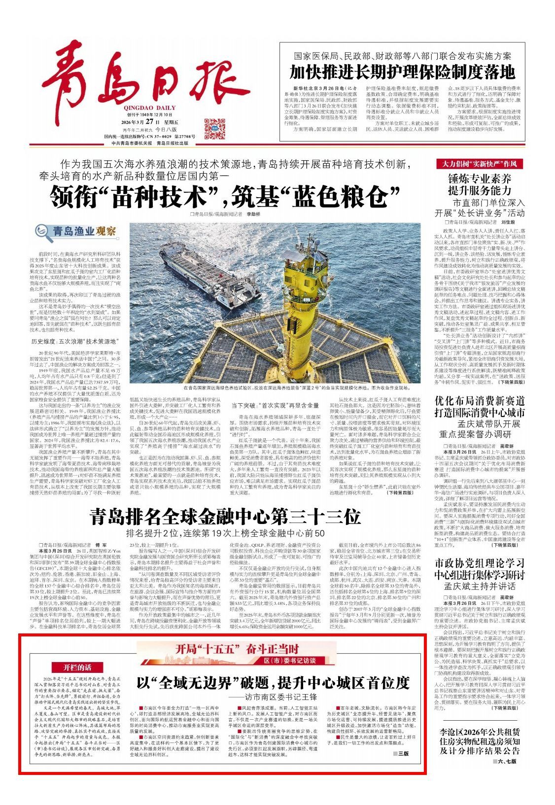 2026年是“十五五”规划开局之年,青岛正深入贯彻落实习近平总书记对山东、对青岛工作的重要指示要求,锚定“走在前、挑大梁”,奋力“打头阵、当先锋”,勇毅前行、开拓奋进,全力推动中国式现代化青岛实践迈出新的坚实步伐。