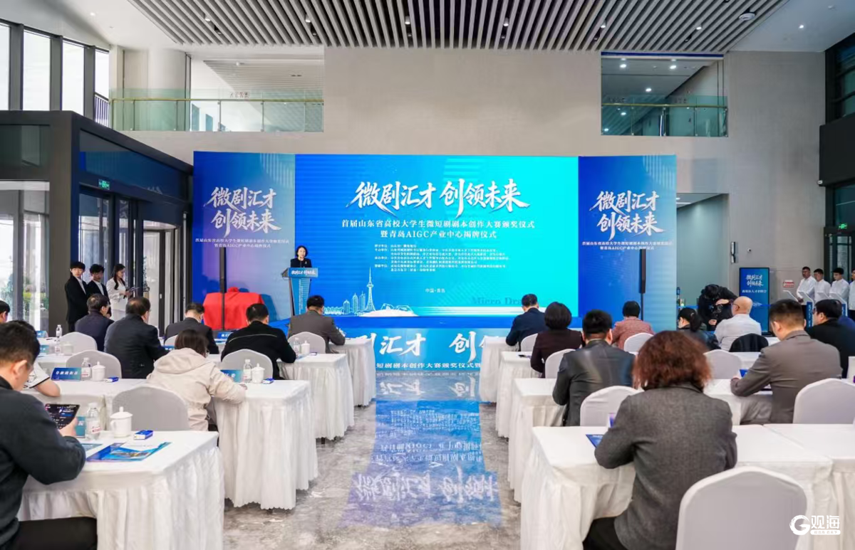 青岛日报社/观海新闻3月27日讯 27日下午,“微剧汇才 创领未来”首届山东省高校大学生微短剧剧本创作大赛颁奖仪式暨青岛AIGC产业中心揭牌仪式在浪潮青岛大数据产业园举办,青岛AIGC产业中心暨新媒体产业OPC孵化中心揭牌成立,青岛风云视界影视科技有限公司等5家优质企业作为首批AIGC短剧企业及OPC孵化项目正式入驻。