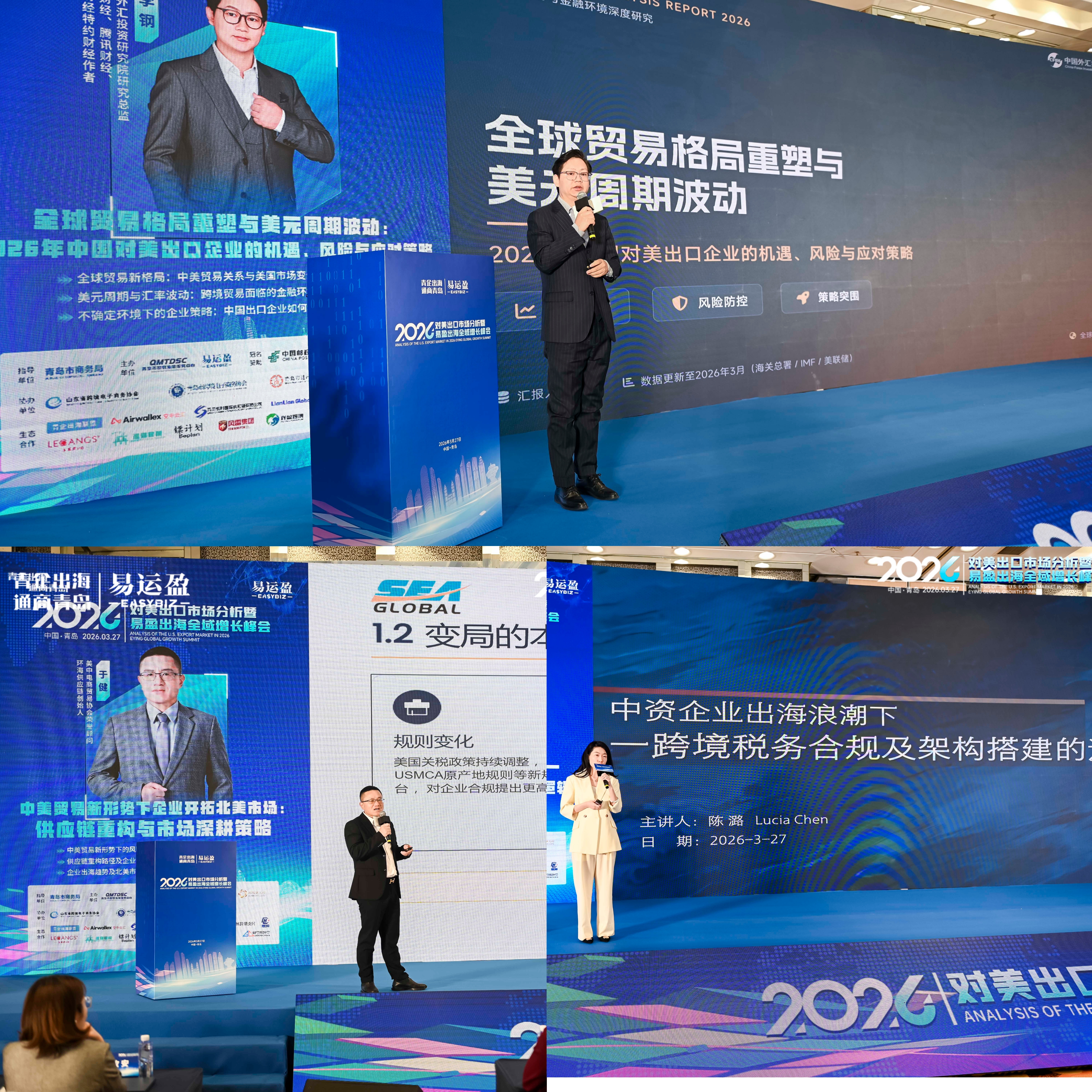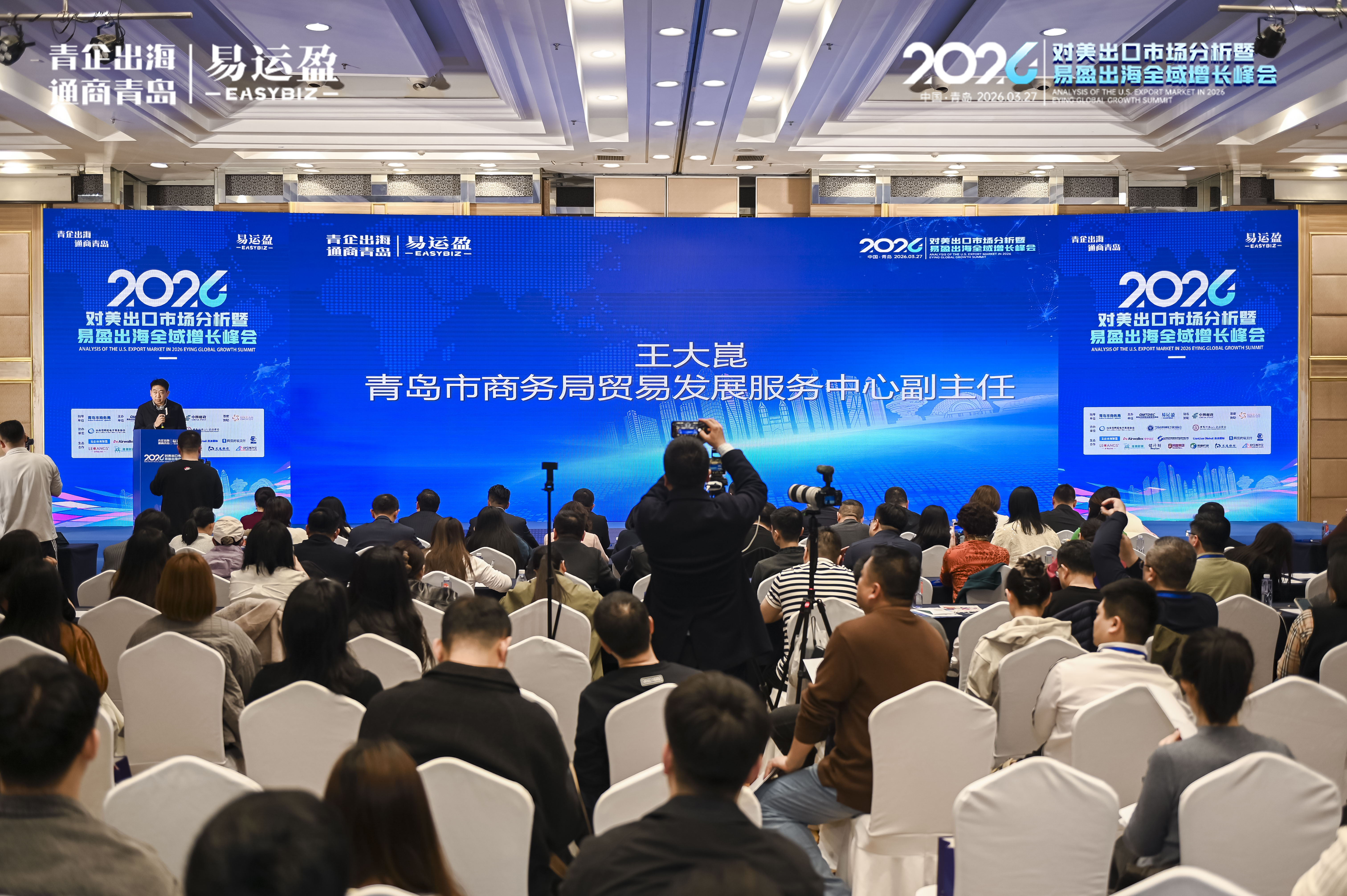 青岛日报社/观海新闻3月27日讯 近期,美国关税政策出现阶段性调整,关税松绑为外贸企业拓展对美市场带来新的发展契机。为助力青岛及北方外贸企业抢抓关税新政窗口期,规避贸易风险,提升对美贸易韧性,3月27日,以“青企出海 通商青岛”为主题的“2026年对美出口市场分析暨易盈出海全域增长峰会”在汇泉王朝大饭店成功举办。本次峰会由青岛市商务局指导,青岛市贸易发展服务中心和易运盈(山东)网络科技有限公司联合主办,来自政府部门、商协会、专业机构及外贸、跨境电商企业的代表共400余人参会,直播在线观看人数突破1000人。峰会聚焦中美贸易新形势、外汇风险、跨境合规、品牌出海与平台增长五大核心方向,为外贸和跨境电商企业带来一场高规格、实战化、全维度的出海增长盛宴,共话对美出口新机遇,共拓全域增长新路径。
