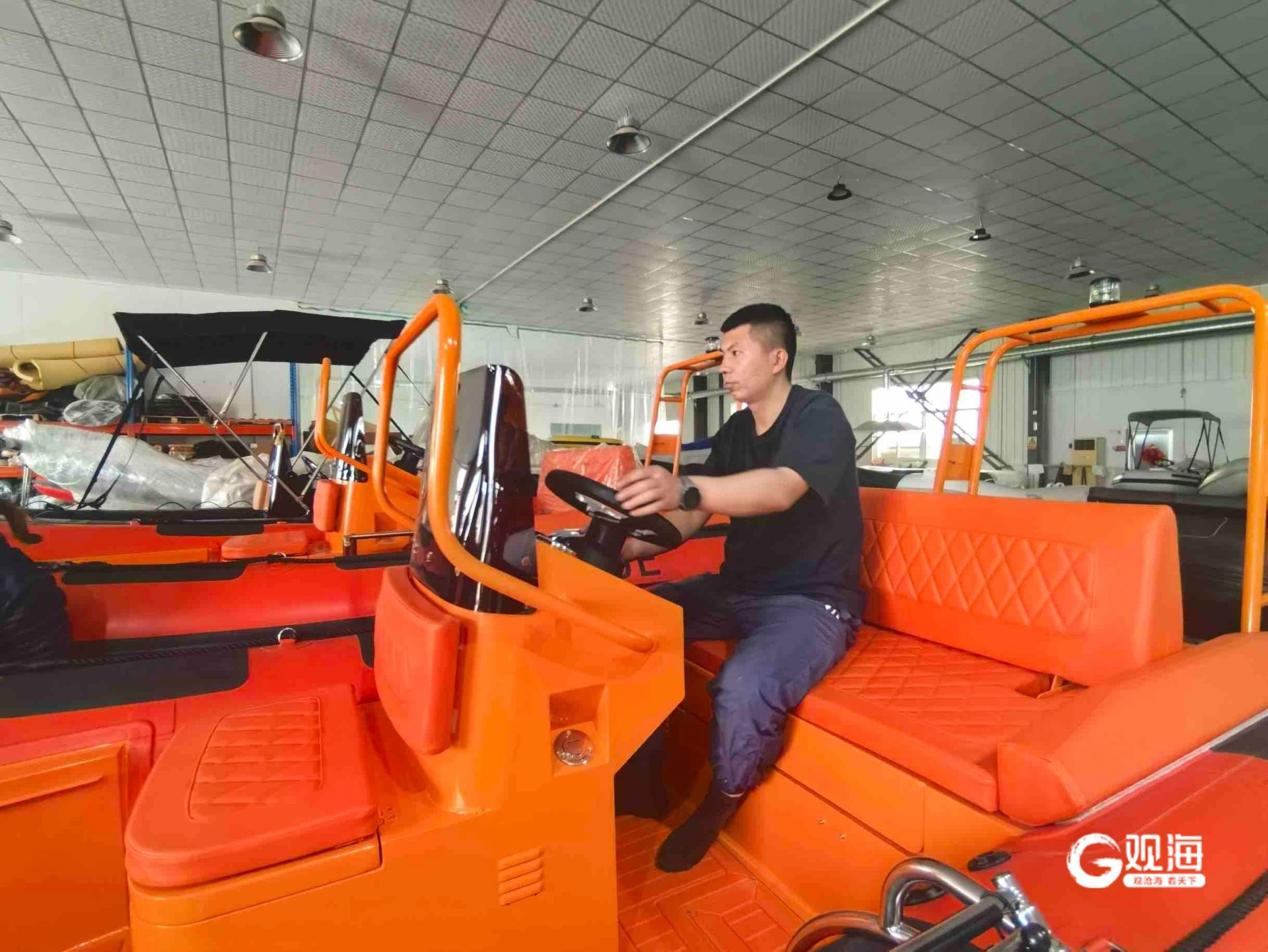 偌大的车间内,原材料存放区、船体加工区、配件组装区、成品调试区、打包出口区依次排开,各类玻璃钢、铝合金板材、充气艇面料、船用发动机等原材料和配件分类摆放,工人们身着统一工装,全神贯注地投入到各自的工序中,裁剪、合副、糊制、组装、调试、质检,每一个环节都衔接紧密,每一道工序都一丝不苟,一艘艘不同规格、不同用途的游艇半成品与成品有序陈列,从小巧便捷的充气艇到坚固耐用的玻璃钢游艇,从适合家庭休闲的观光艇到肩负应急使命的消防救援艇,品类丰富的产品矩阵,直观展现着企业的生产实力与产品覆盖面。