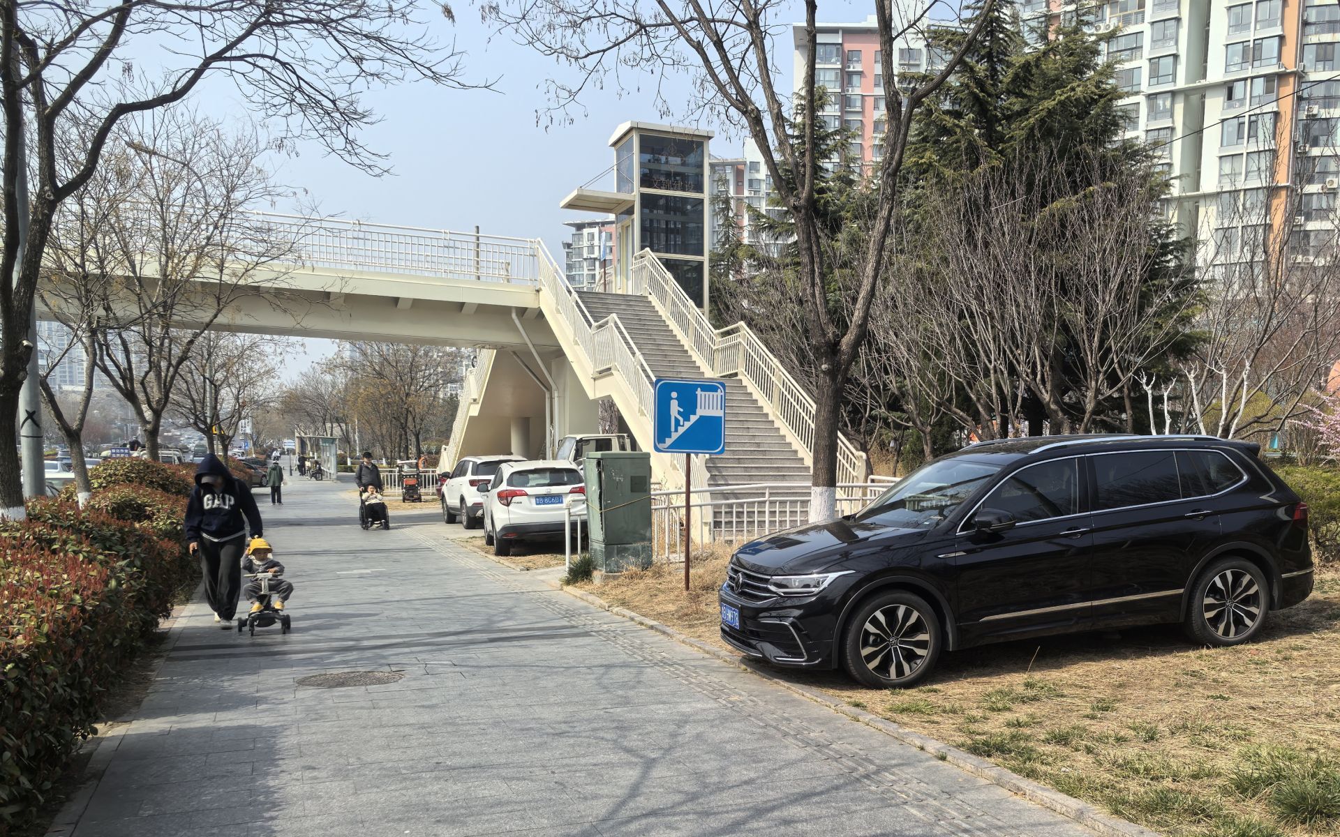 3月28日下午,记者来到劲松五路实地探访。作为浮山新区重要的南北大通道,劲松五路管理规范,道路两侧停车秩序井然。但在春光山色公交站以南的人行天桥下方,有多辆汽车随意停放在草坪上,在汽车的碾压下,部分绿植已经枯萎,临近该处绿地的人行道道砖也有多处破损。