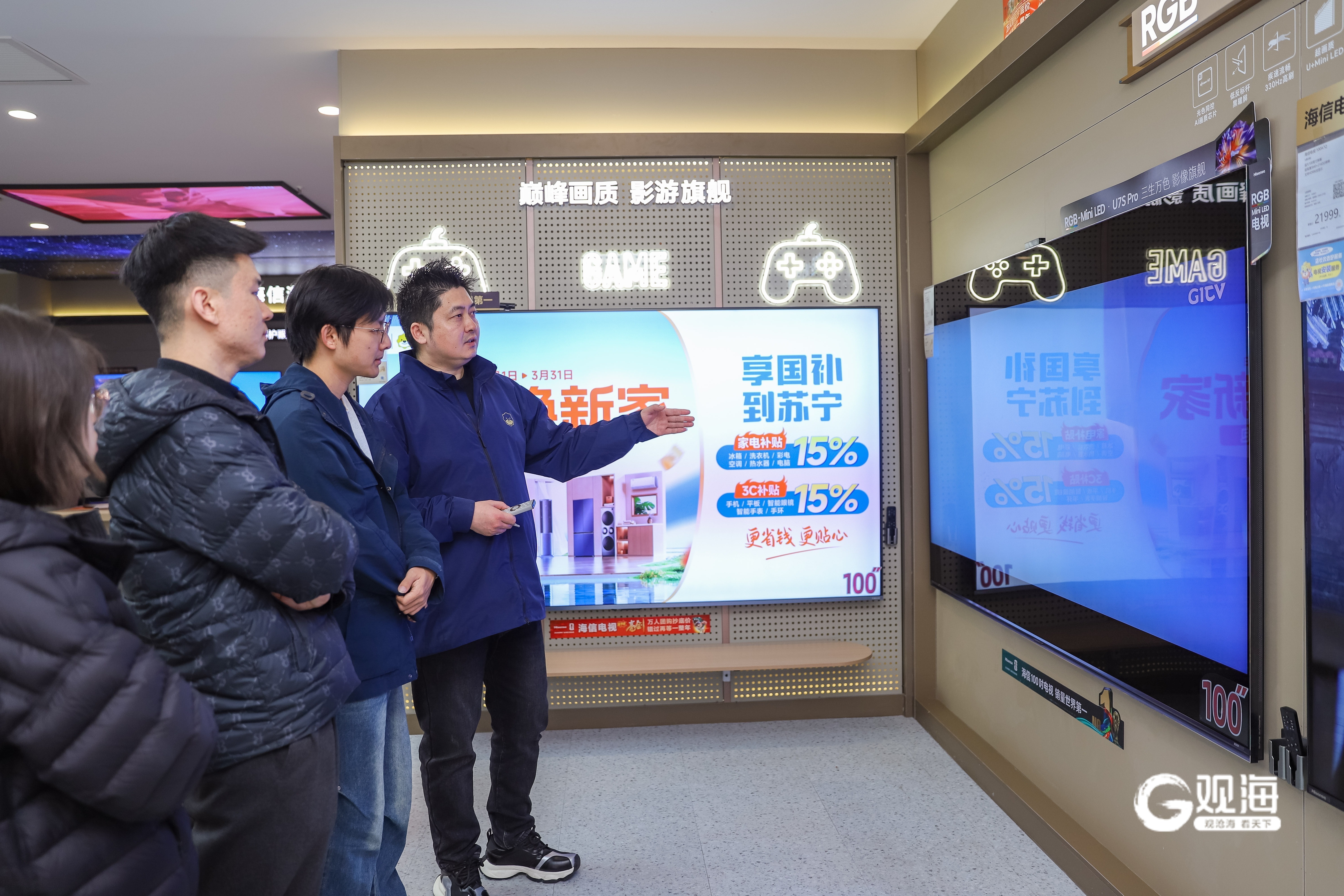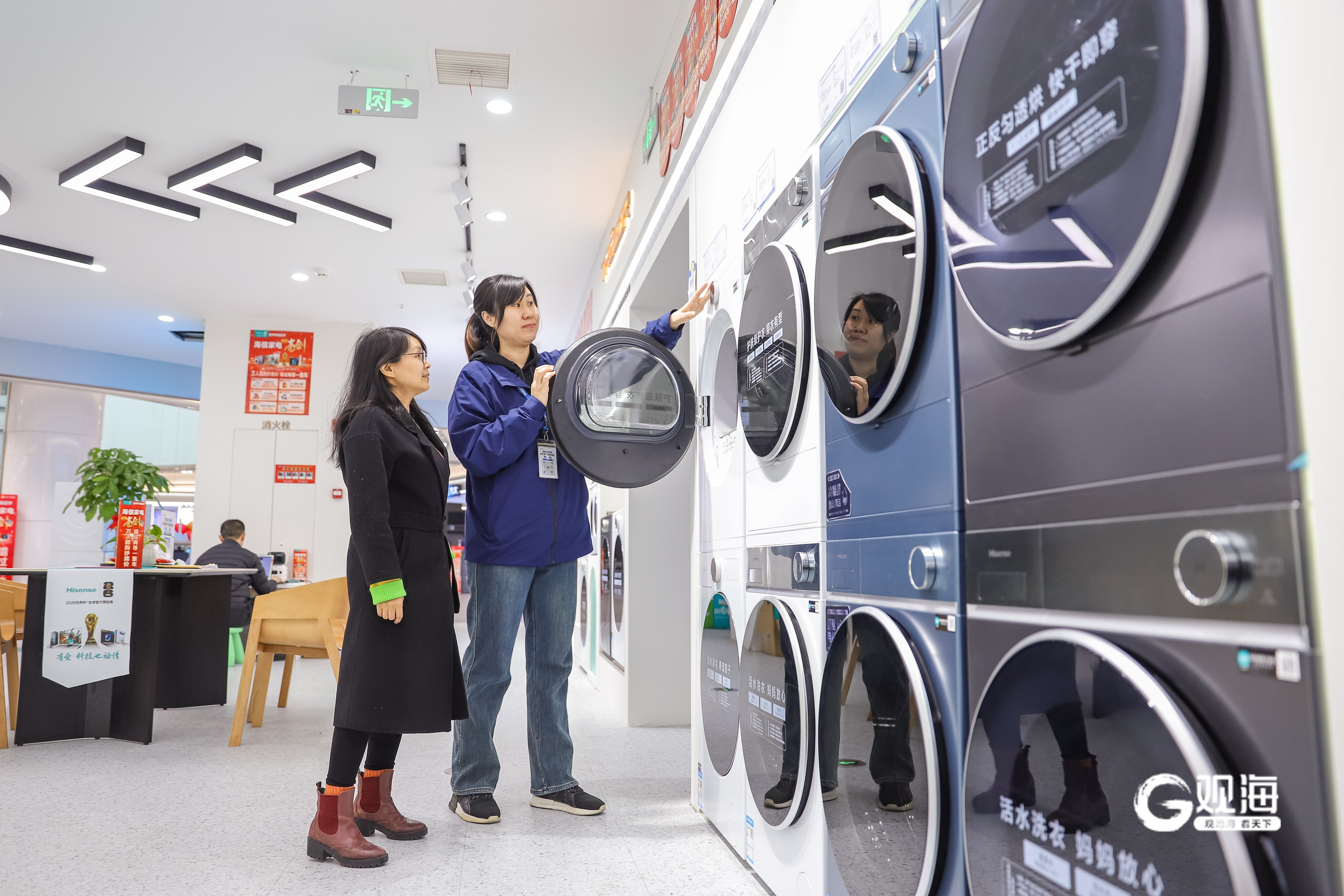 青岛日报社/观海新闻3月28日讯 近日,青岛市李沧区苏宁易购超级旗舰店开展家用电器补贴换新活动。此次活动在国家以旧换新补贴政策的基础上,企业自主加码让利,通过“政策补贴+企业让利”的双重优惠,吸引不少消费者选购,不断激发春季家电消费热潮。(青岛日报/观海新闻记者 周伟 通讯员 张鹰 摄影报道)