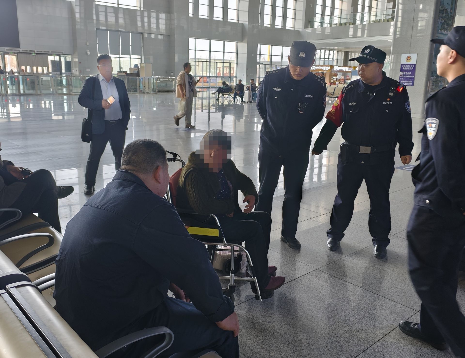通过与老人的儿子电话联系,对方请求民警看护好老人家,不要让其乘坐火车,自己立马赶过去。