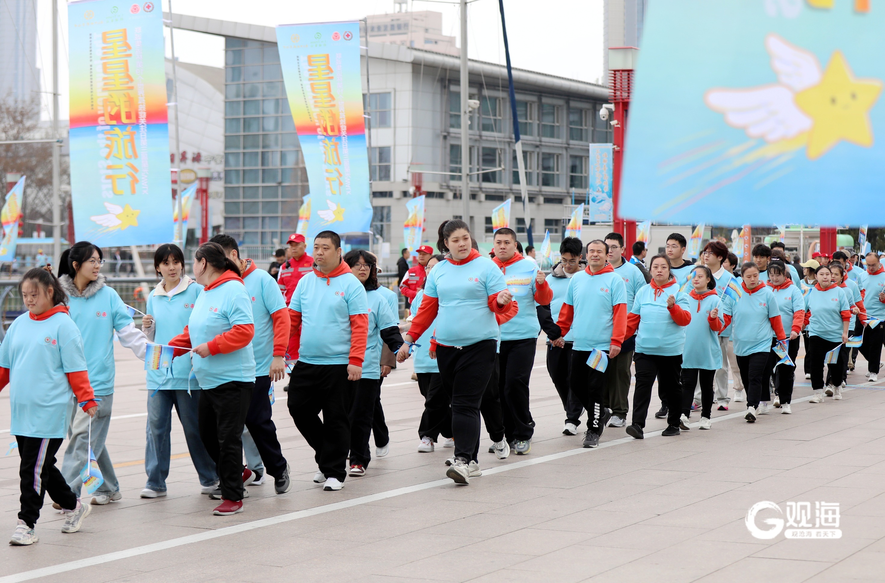 青岛日报社/观海新闻3月29日讯 29日,由青岛红十字玫瑰基金主办的世界孤独症关注日千人主题健步行在奥帆中心举行,来自特教机构的星星宝贝及其家人在志愿者陪伴下参加活动,同系蓝丝带,宣传公益理念。