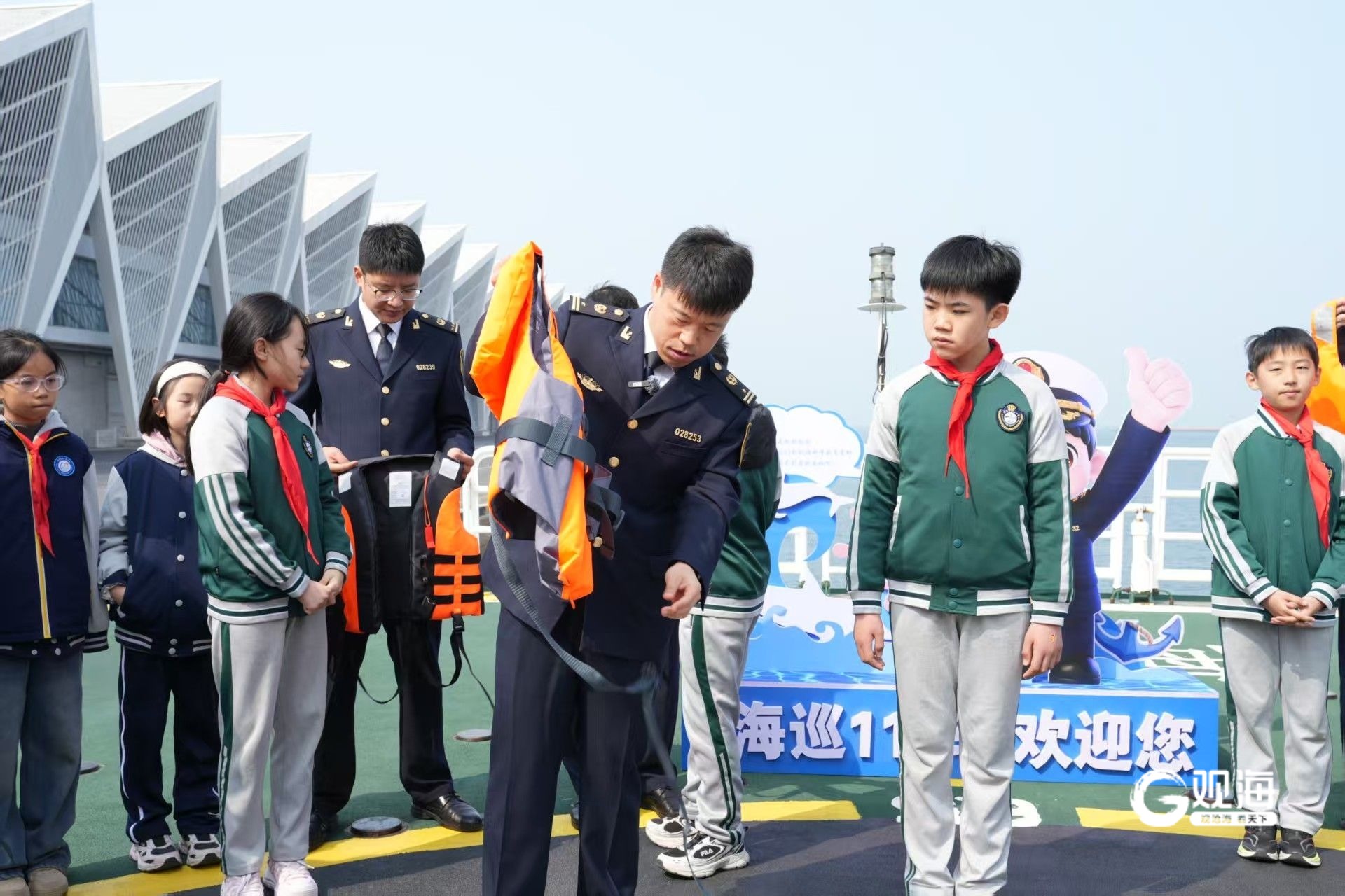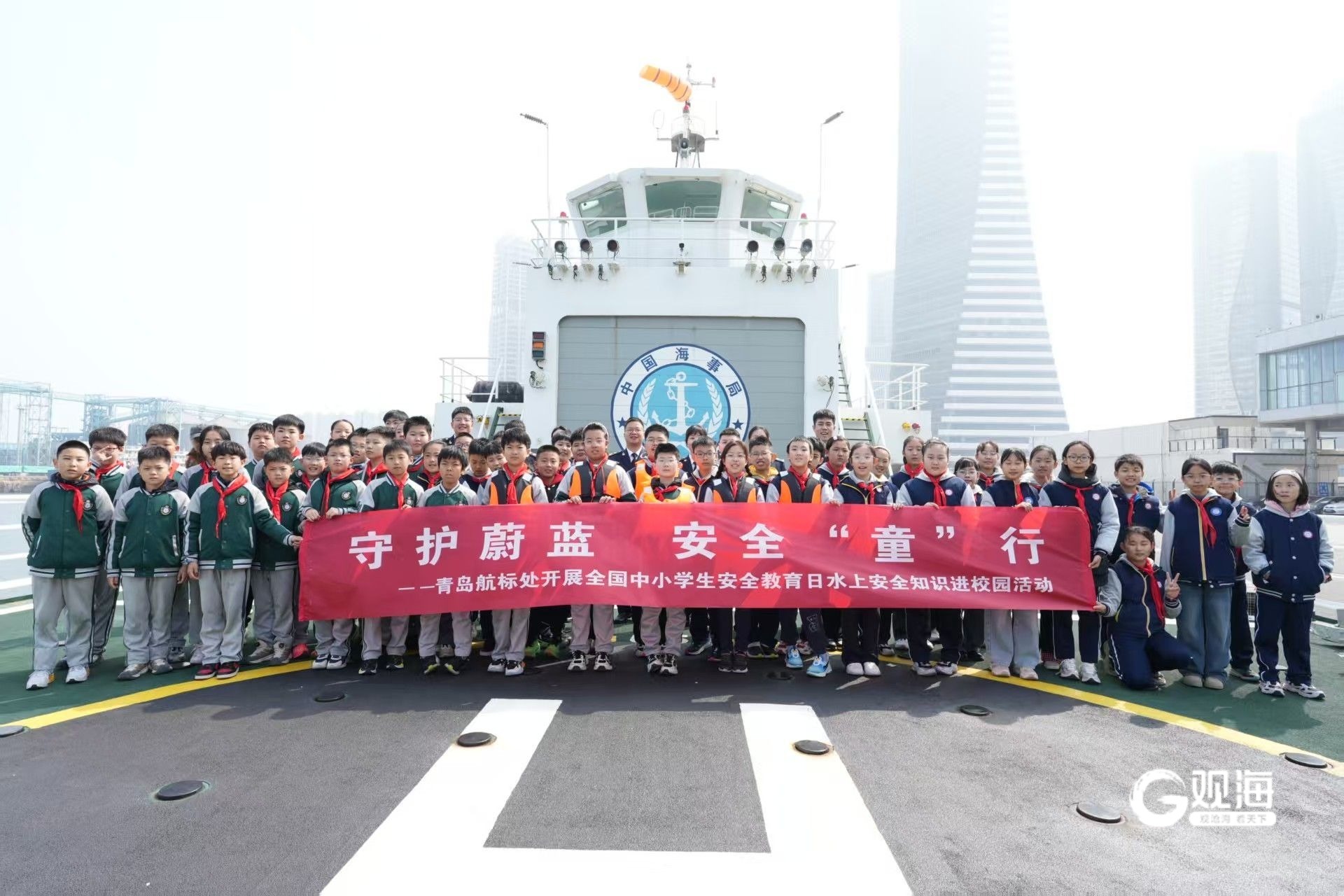 青岛日报社/观海新闻3月30日讯 日前,在全国中小学生安全教育日来临之际,为进一步增强青少年水上安全意识,普及防溺水知识,提升海上遇险自救与逃生能力,青岛航标处联合青岛海事局,依托“海巡11”轮这一生动的海上移动教育基地,共同举办了“守护蔚蓝,安全‘童’行”主题实践活动。来自多所学校的40余名中小学生代表,在工作人员的陪伴下,开启了一场别开生面的水上安全探索之旅。