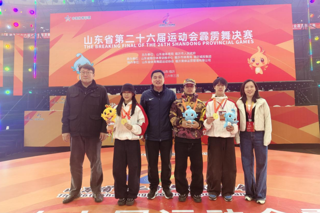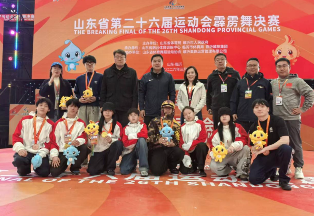 3月30日,山东省第26届运动会霹雳舞项目决赛在临沂市奥体公园体育馆落下帷幕。霹雳舞作为第26届省运会的首个决赛项目,吸引全省11个地市的青少年优秀舞者同台竞技。青岛市霹雳舞队在本次比赛取得1金1银1铜的优异成绩,为青岛市代表团斩获第26届省运会首枚金牌,打响了省运会开门红。