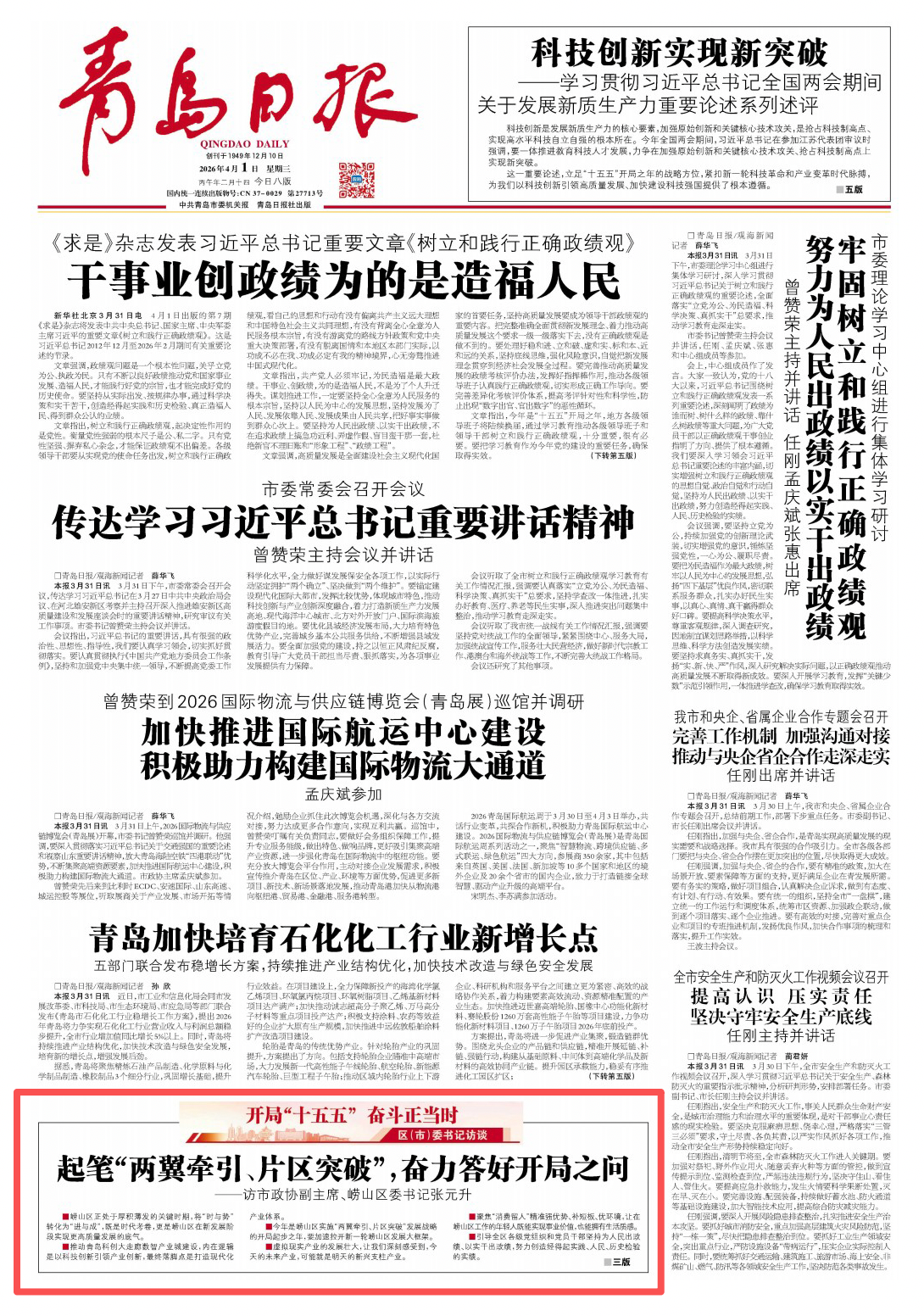 今年是“十五五”规划的开局之年,也是全面贯彻落实党的二十届四中全会精神的关键一年。站上新起点的崂山区,要牢牢抓住战略叠加机遇,将“时与势”转化为“进与成”,奋力在全市高质量发展中“走在前、当排头”,加快建设新时代社会主义现代化国际大都市创新型品质城区。