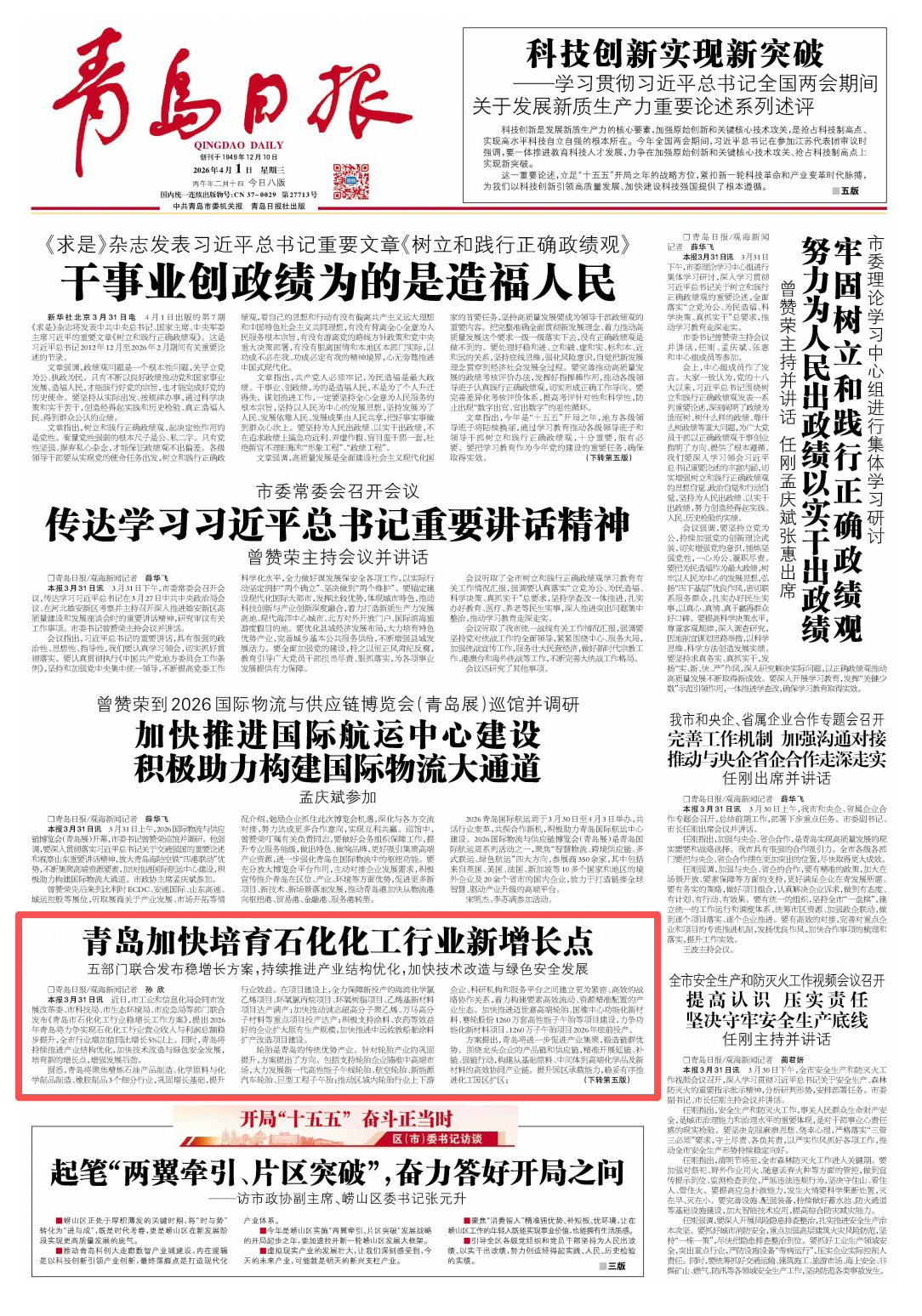 青岛日报2026年4月1日1版