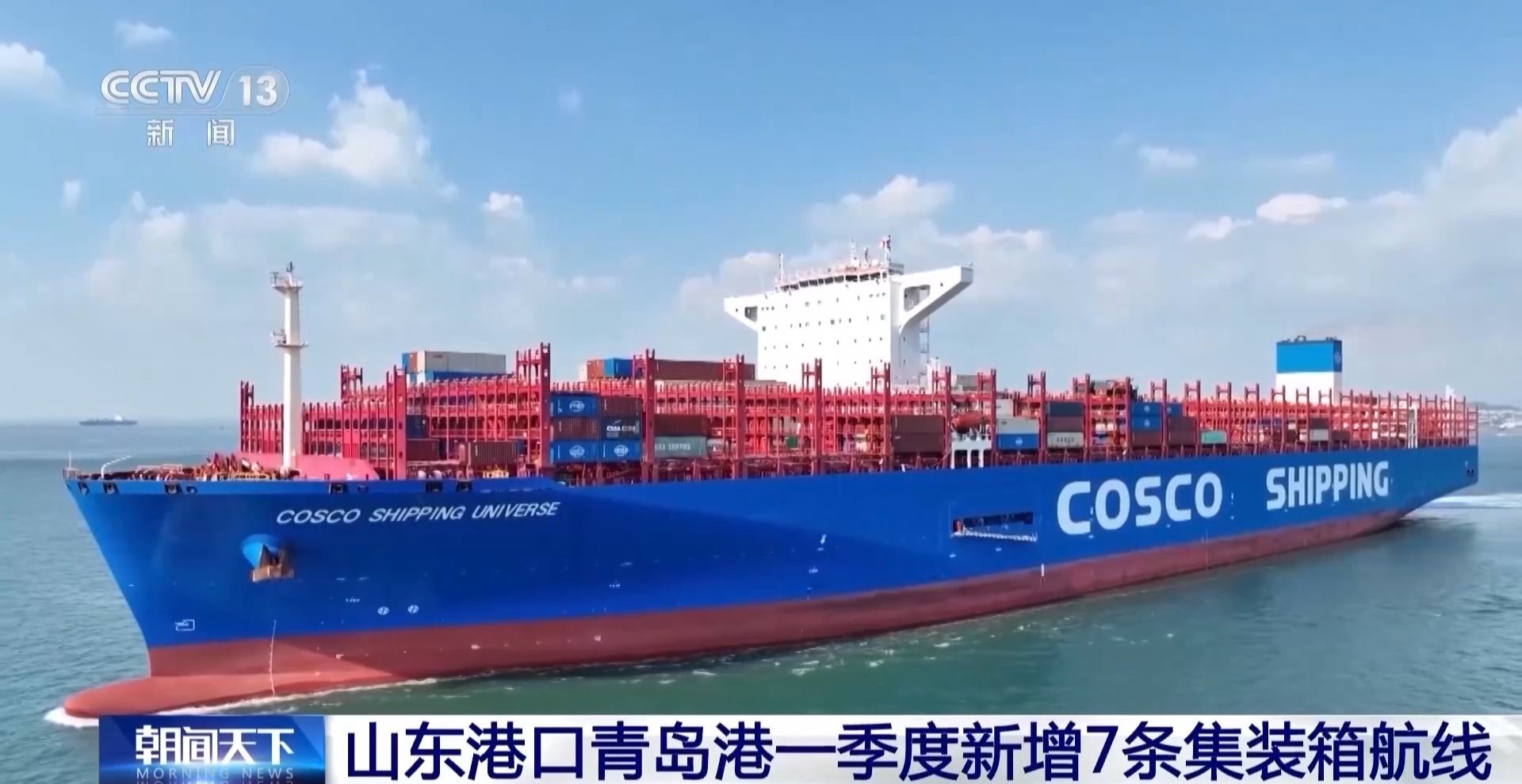 今年以来,我国港口外贸集装箱吞吐量实现了两位数增长。一季度,青岛港新开通7条集装箱航线,扩容密度远超去年同期,为外贸进出口提供了稳定、高效支撑。