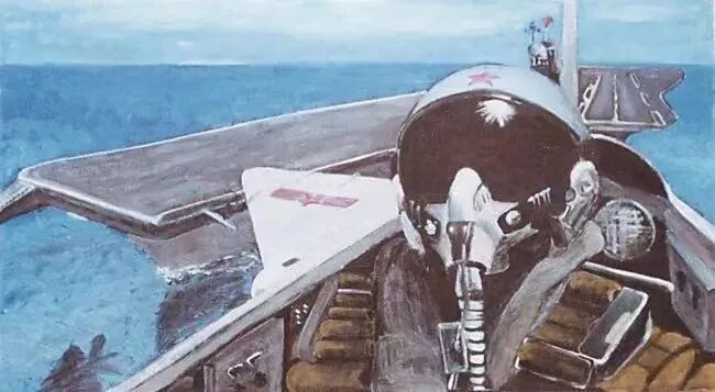 画中一名飞行员驾驶舰载机