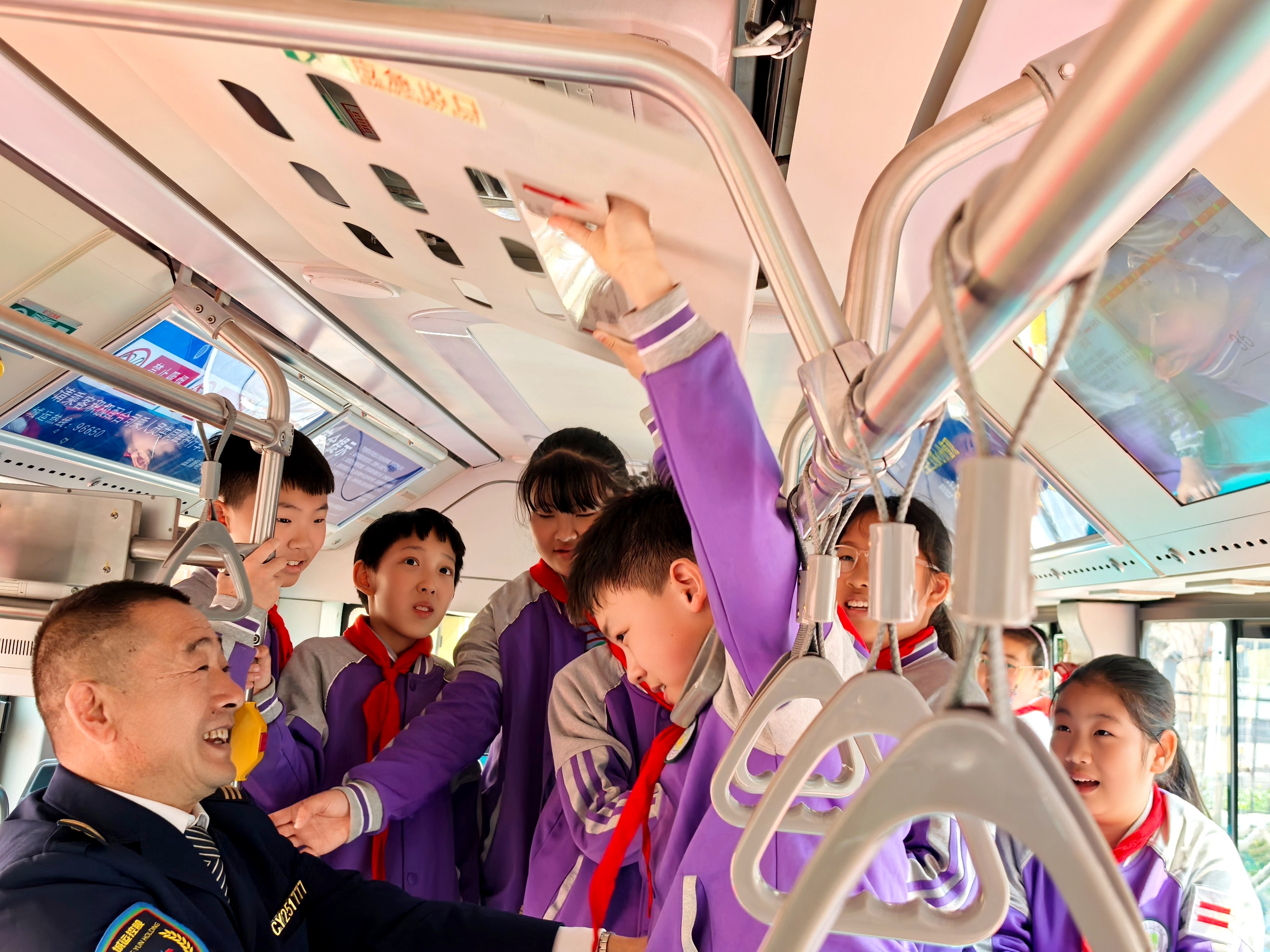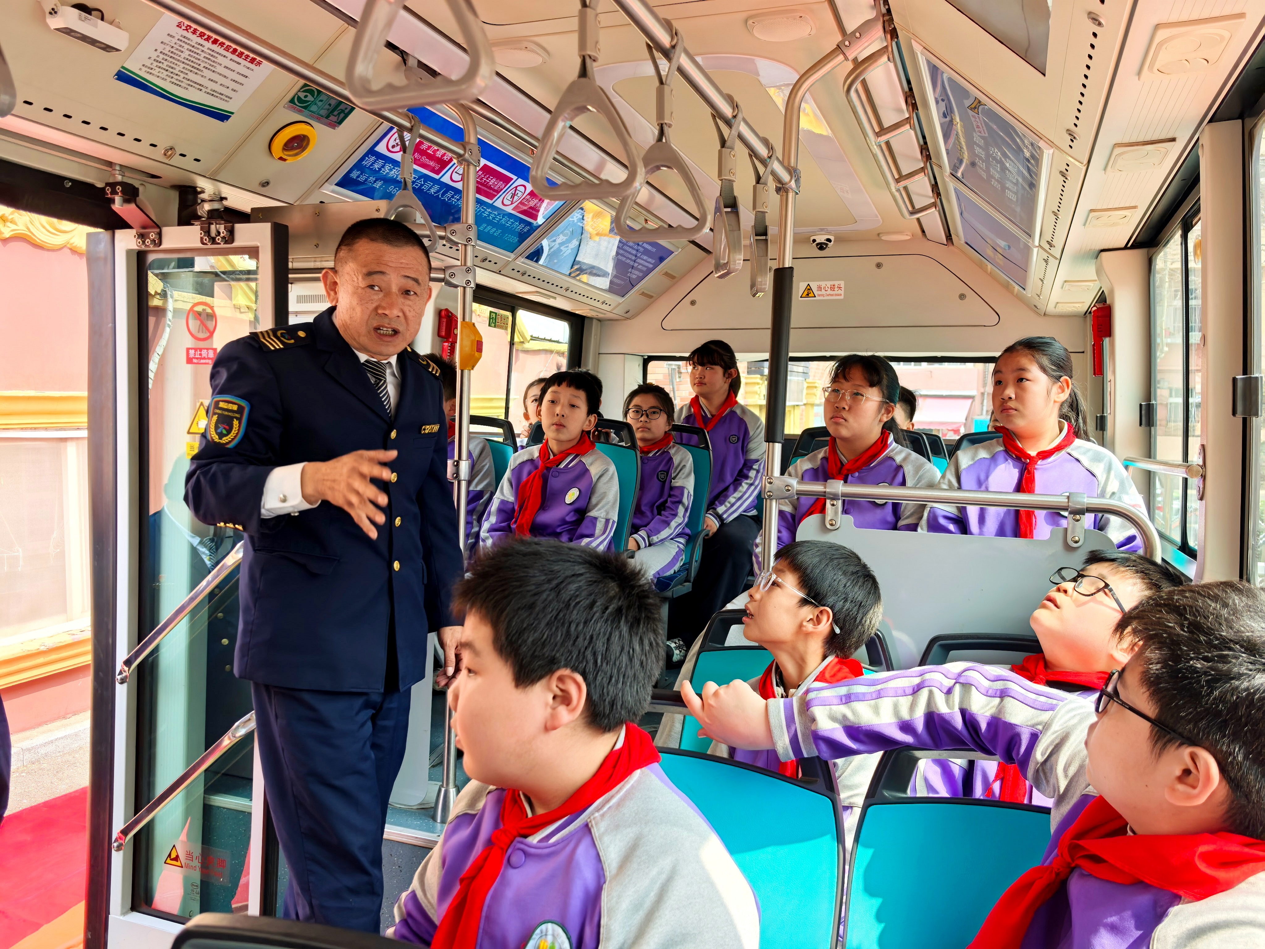 此次活动以市南巴士公司创新设计的1:1可移动车辆盲区示意地垫为核心教具,通过实景讲解、互动体验等形式,为延安二路小学的学生们送上一堂生动实用的交通安全课,切实提升青少年安全出行意识与自我防护能力。