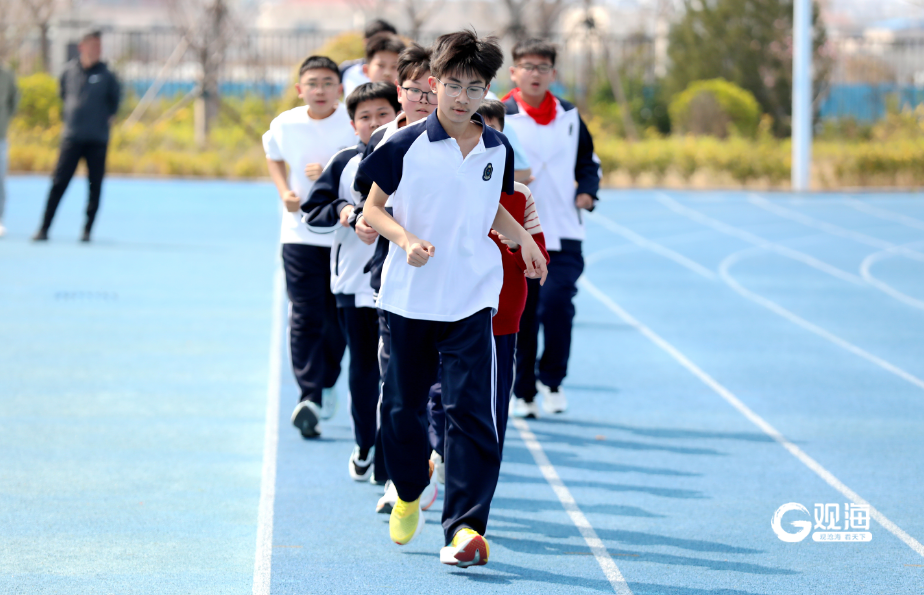 上午10点,学校的大课间时间,栈桥东侧海边的大坝上,一群身着蓝白校服的少年意气风发,集体奔跑。他们是青岛实验初中的学生。该校位于老城区,学校因地制宜破解场地受限难题,巧妙利用毗邻海边的地理优势,将课间跑操搬到了海边,开展“跑大坝”“喊海”等特色活动。学生们从北门出发,沿莱阳路、莱西路、栈桥东侧海边、太平路一线跑步,再返回学校,全程约2000米。