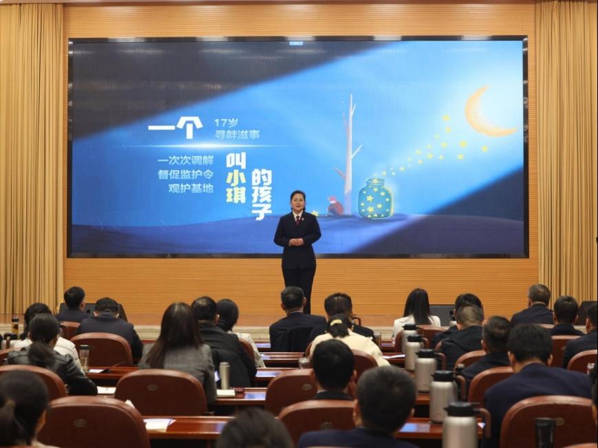 枣庄市峄城区人民检察院贾琨以《榴花映检徽 护蕊向朝阳》为题,讲述了“榴花朵朵”未检团队以法为盾、以爱为桥守护未成年人成长的暖心故事,生动诠释了基层司法工作中的温情与担当。