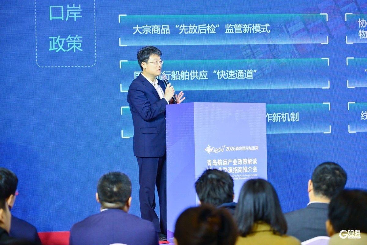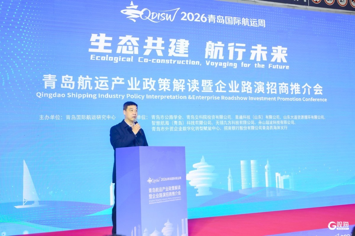 青岛日报社/观海新闻4月2日讯 为深入贯彻落实海洋强国、交通强国战略,加快推进青岛国际航运中心建设,4月2日,由青岛国际航运研究中心主办的“生态共建 航行未来”——青岛航运产业政策解读暨企业路演招商推介会在青岛举行。这是2026青岛国际航运周的重要活动板块,聚焦政策赋能、产业协同、创新驱动三大关键方向,全面展现青岛航运产业发展的崭新图景、独特优势与广阔机遇。