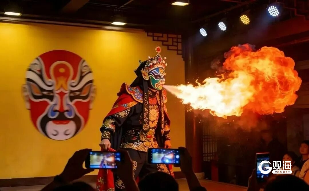 夜间的非遗火秀成为活动压轴亮点,国家级非遗打铁花将1600摄氏度的铁水抛洒升空,化作“铁树银花”的漫天星河,带来极致视觉盛宴;变脸吐火风火轮联演在灯光加持下效果拉满,搭配冷烟花的海洋大秧歌返场,让夜间游园氛围感十足。