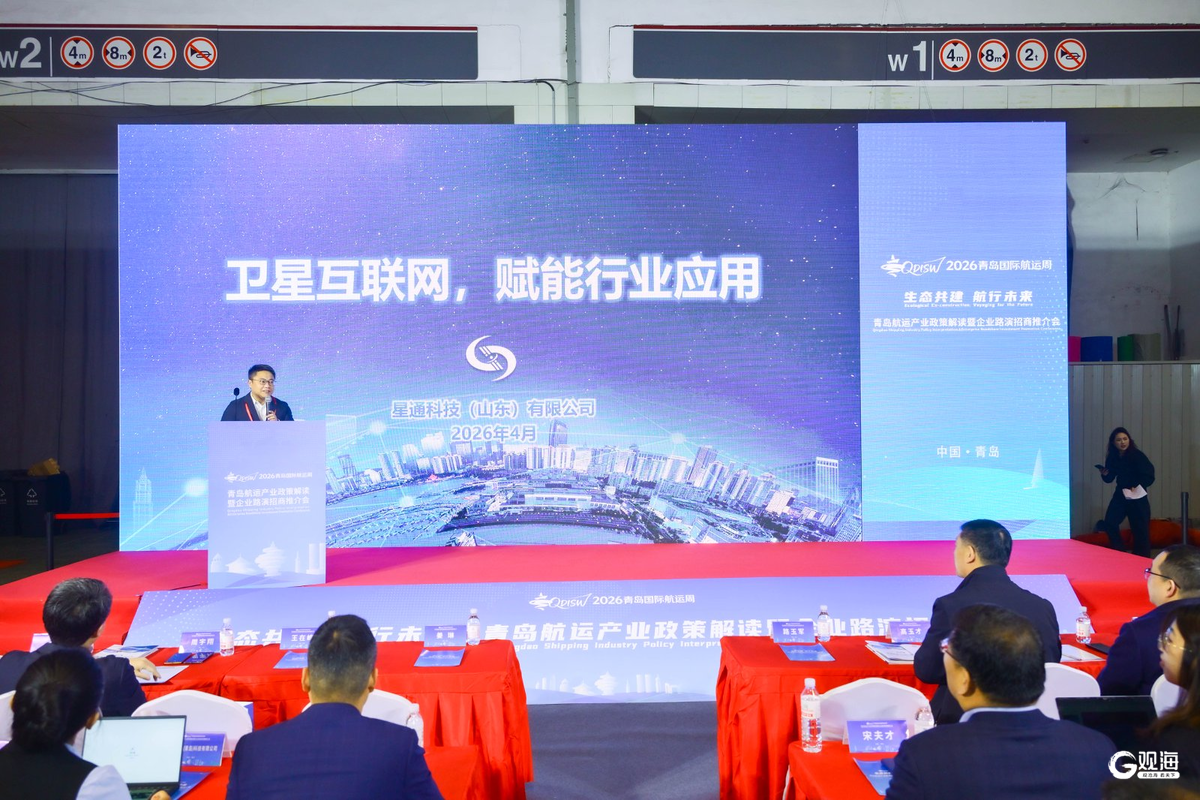 青岛日报社/观海新闻4月3日讯 4月2日,2026青岛国际航运周核心专题活动——“生态共建 航行未来—汇聚航运力量,共筑青岛国际航运新生态”航运物流企业政策招商和路演推介会在青岛国际会展中心1号馆会议厅举行。星通科技(山东)有限公司(简称星通公司)总经理史燕明受邀出席并作“卫星互联网赋能行业应用”主题演讲,系统阐释卫星互联网赋能智慧航运的技术路径、场景方案与产业价值,为青岛国际航运数智化升级注入新动能。