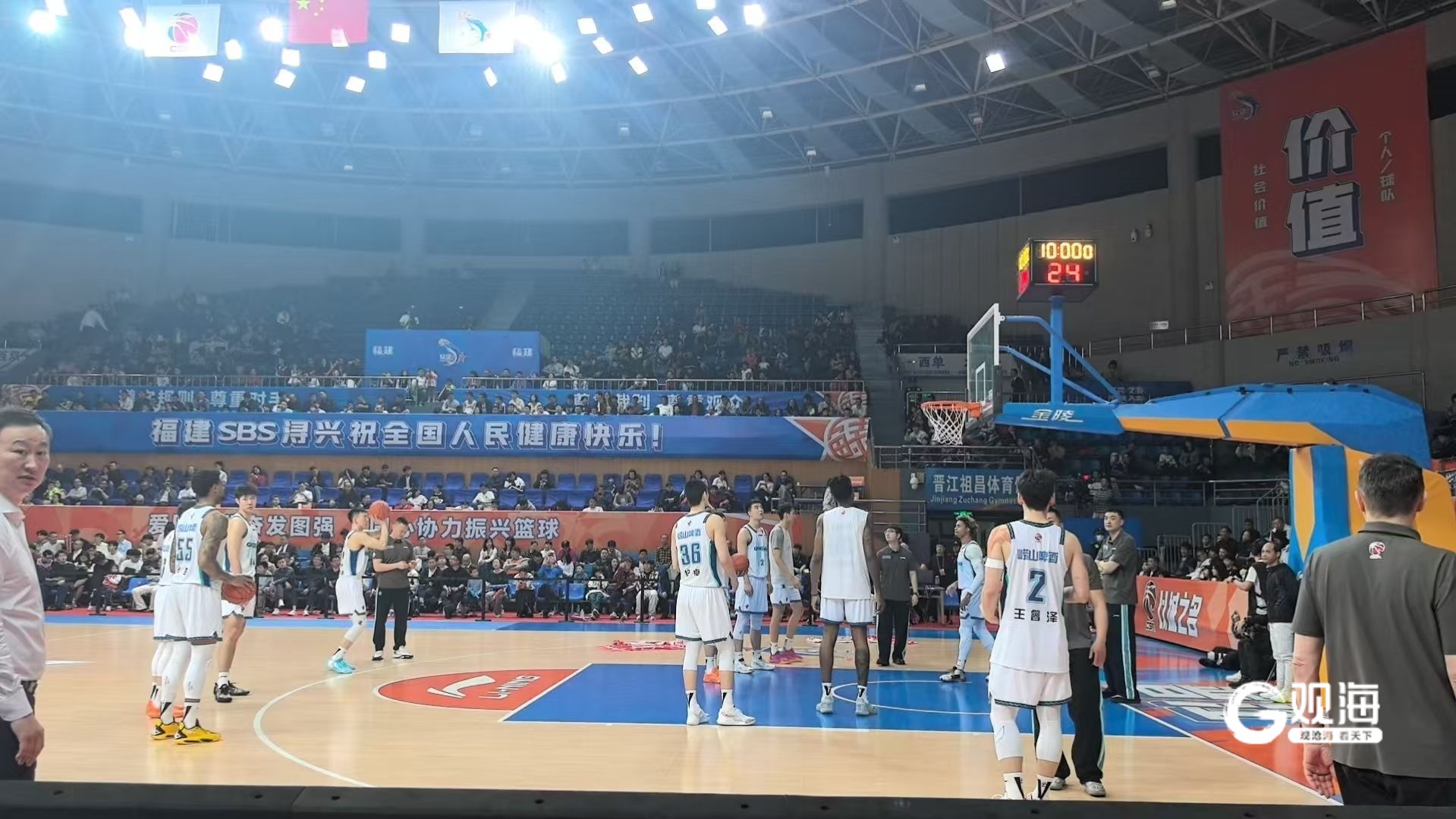 两队之间已经交手两次,所以从战术层面几乎没有秘密可言。青岛队惯用的五人首发,福建队则是邹阳搭档双外援出战。韦瑟斯庞突破得手,段昂君三分线外制造犯规罚球得手,王睿泽三分命中,青岛队8:7开局。比赛进行了短短5分钟,就因为球馆出现漏雨情况。在经过紧急处理后,比赛重新进行。双方进入对攻阶段,韦瑟斯庞接连内线突破得分,单节砍下10分,青岛队25:24领先。