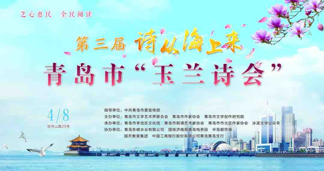 本次诗会由青岛市委宣传部指导,青岛市文学艺术界联合会、青岛市作家协会、青岛市文学创作研究院联合主办,青岛市李沧区文化馆、青岛市朗诵艺术家协会、青岛市市北区作家协会、冰凌文学公众号共同承办,是一场面向全民的公益文化活动。活动将于2026年4月8日(周三)上午9:30在青岛市市南区信号山路25号举办,免费向公众开放,无需提前报名。
