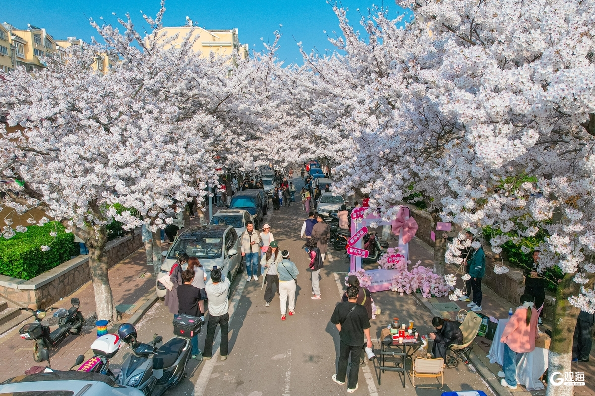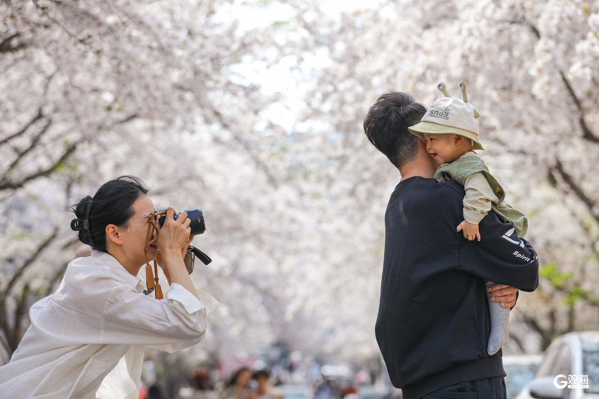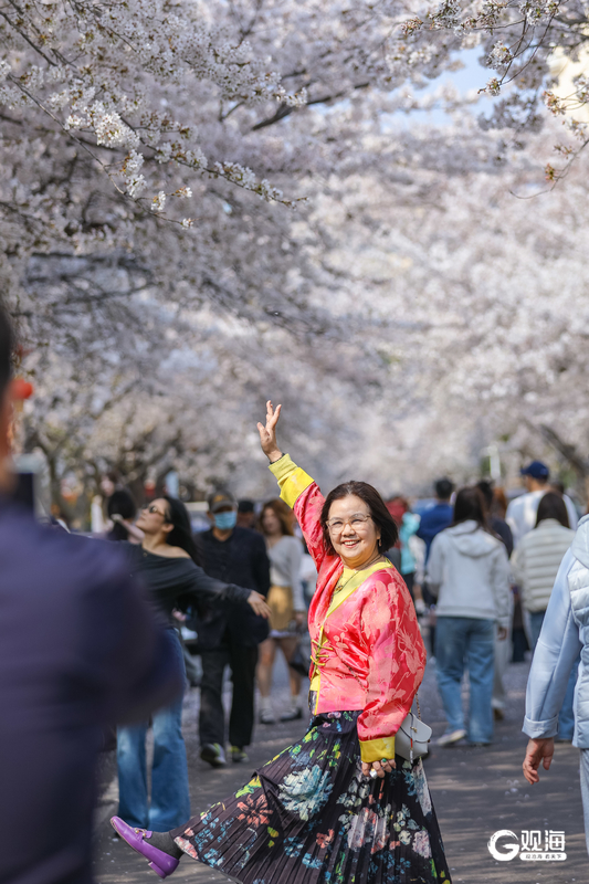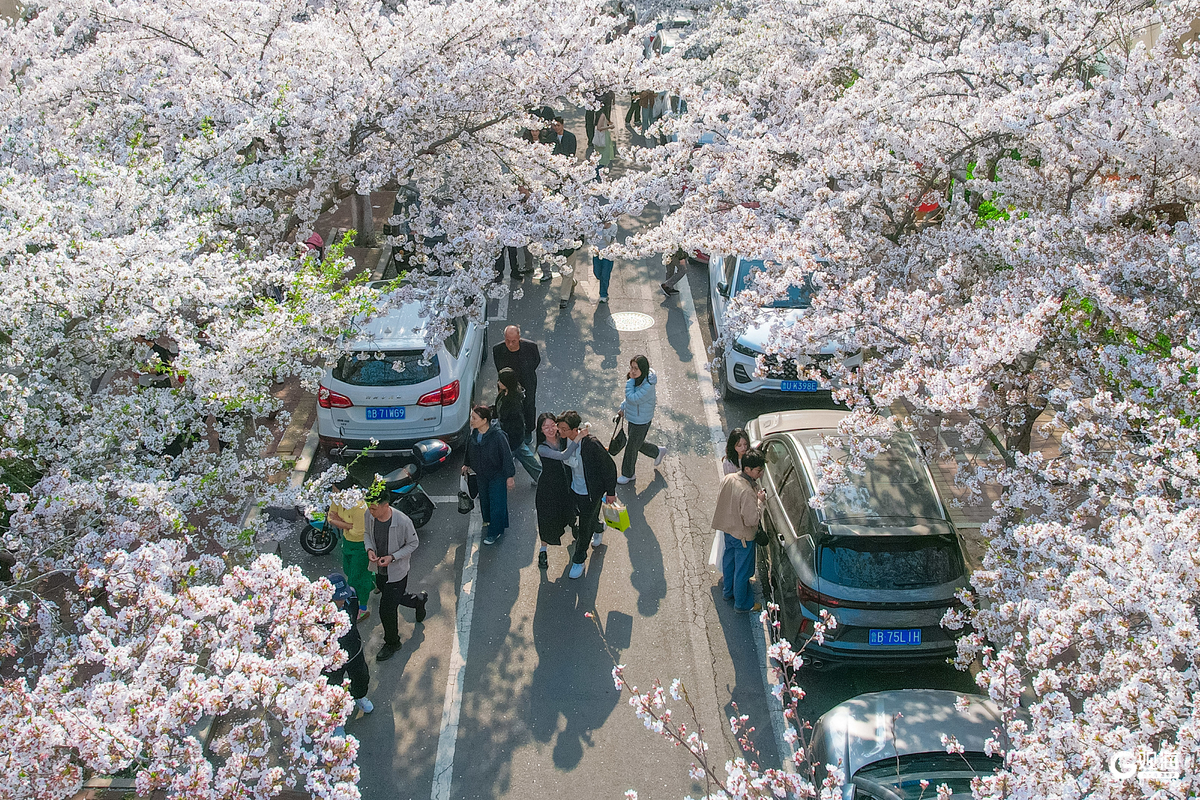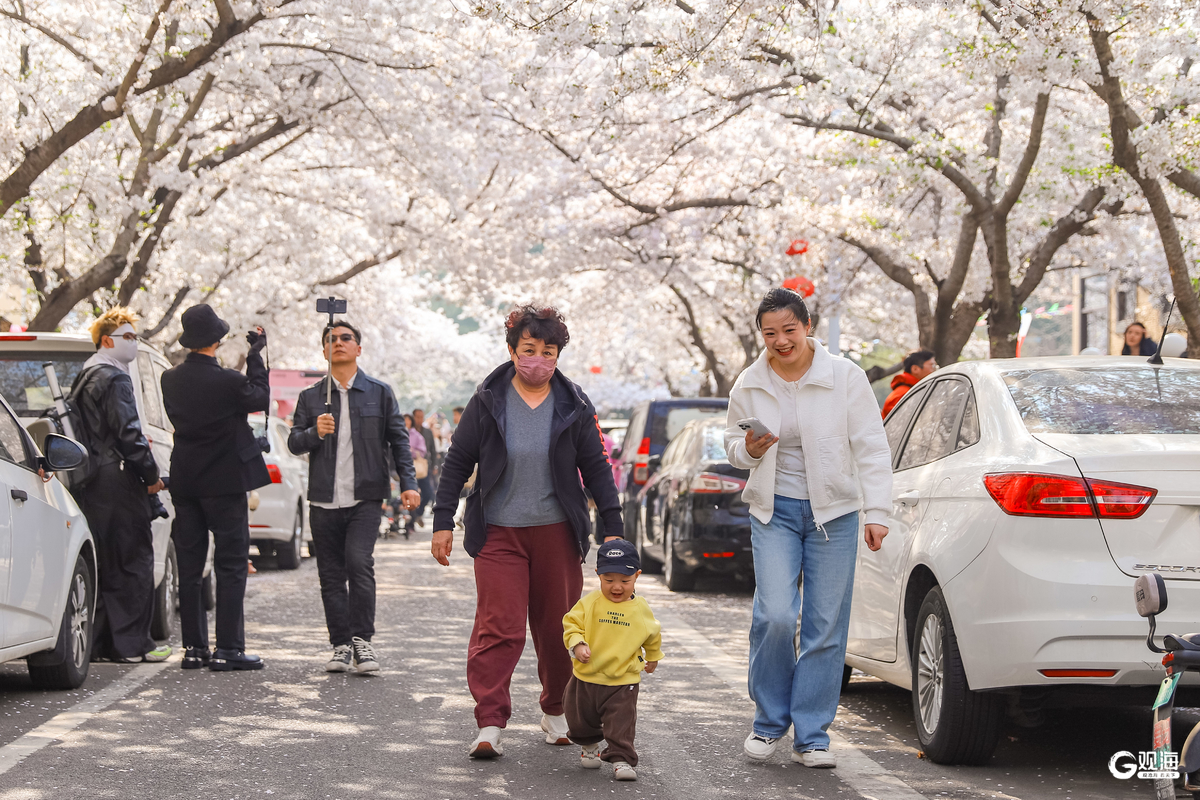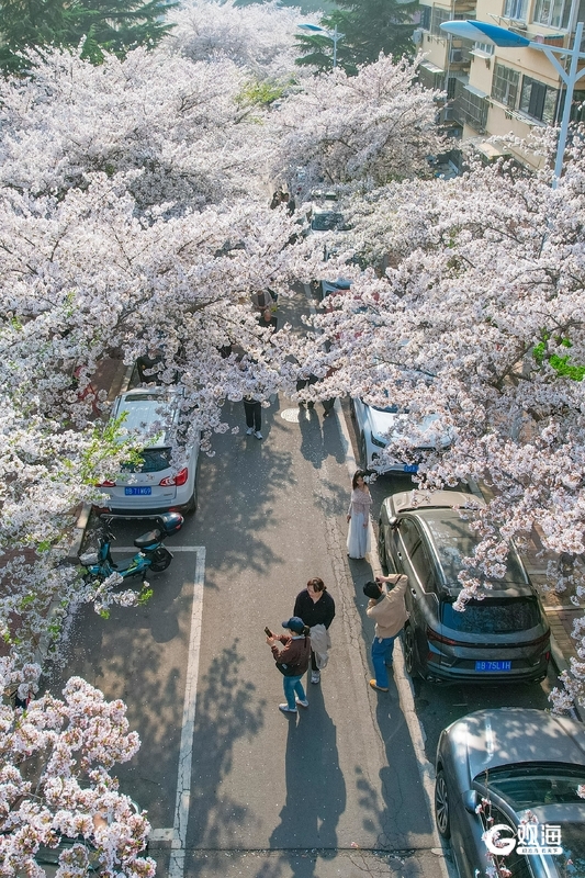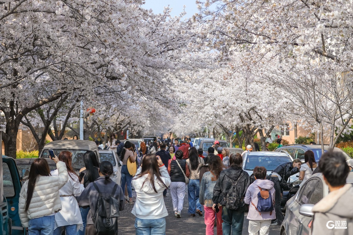 青岛日报社/观海新闻4月4日讯 连日来,青岛市李沧区楼山街道翠湖社区800余株樱花树绵延成粉色、白色的花海,吸引各地游客纷至沓来、赏花游玩。(青岛日报/观海新闻记者 周伟 通讯员 张鹰 摄影报道)
