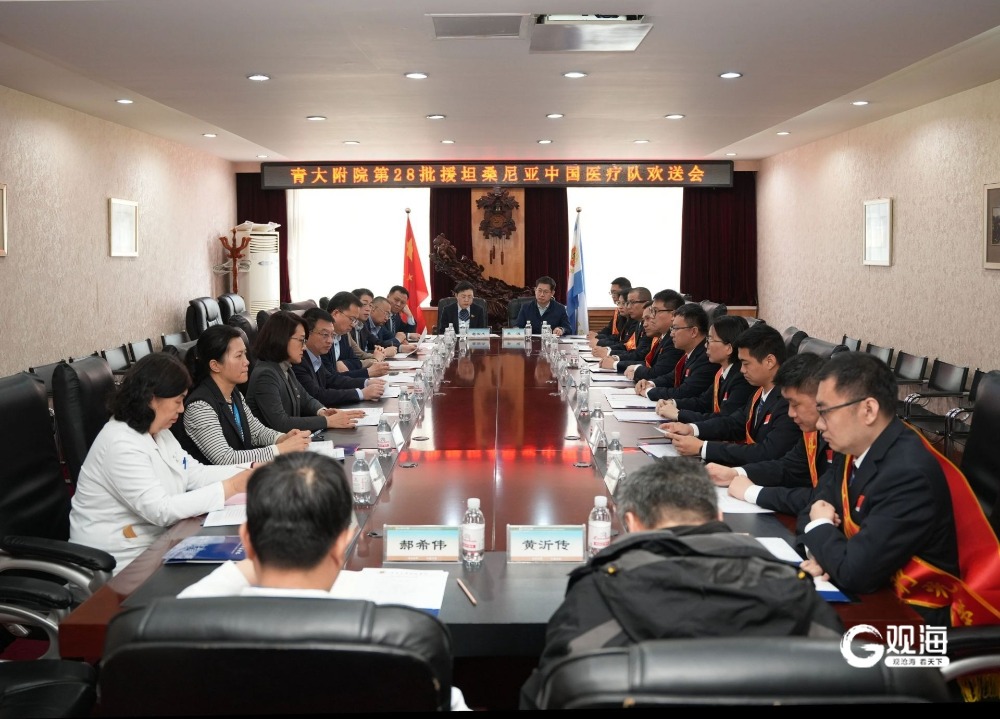 3月27日,医疗队在济南参加欢送仪式,省卫生健康委、省科技与人才发展中心、青大附院相关负责人出席并为队员送行。4月2日,青大附院举行第28批援坦桑尼亚中国医疗队欢送会,青岛大学青岛医学院党委书记、青大附院党委书记蒋光峰,青大附院院长、青大第一临床医学院院长、青大医疗集团总院长李环廷,以及医院相关职能部门负责人、派出科室主任代表等为即将启程奔赴非洲、担负为期一年半医疗援外任务的医疗队员送行。
