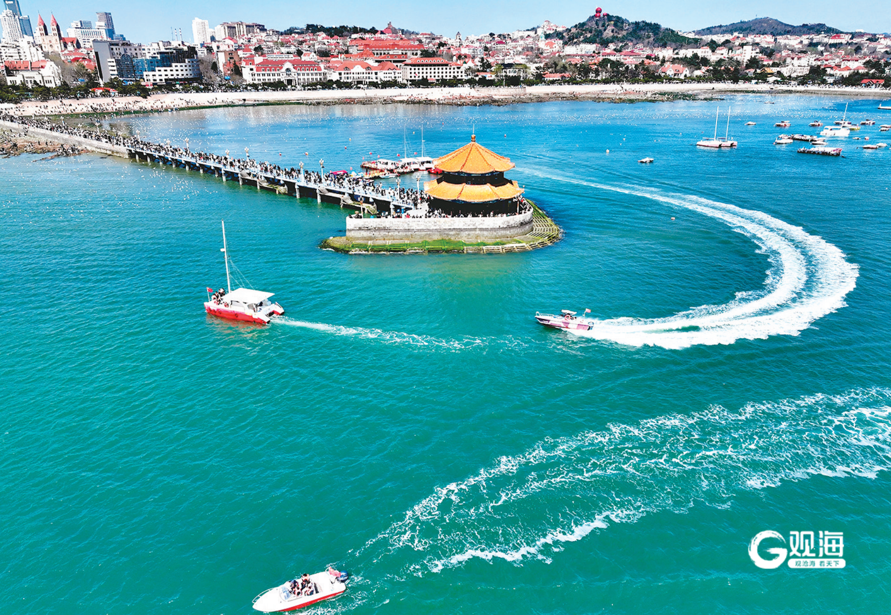 清明假期的青岛春光明媚。在栈桥附近的海面上,一艘艘游船以海为画布、以船为画笔,绘出了一幅幅精美的海上游画卷。王雷 摄