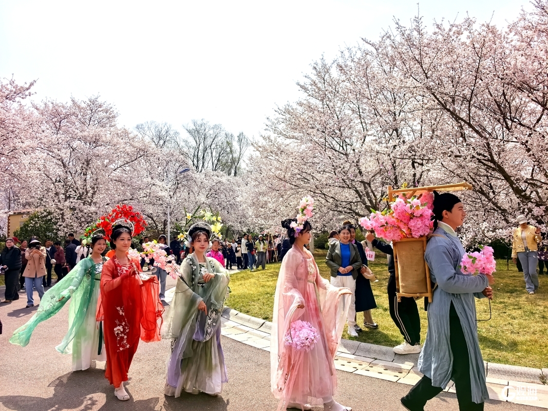 樱花节配套主题活动同样亮点纷呈、人气爆棚。“硬核坦克快闪与温柔樱花花海碰撞,反差感十足,太出片了!”在坦克快闪车展区,来自潍坊的游客李凯正在打卡拍照,解锁春日新潮体验。不远处,身着古风服饰的簪花郎巡游队伍缓步而行,头戴繁花、衣袂翩翩,与樱花景致相得益彰,成为林间一道流动的风景线;祈福树前,游客们提笔写下心愿牌,将春日期许与美好祝福系于枝头,寄托对生活的热爱。据青岛源诚画美达尼旅游发展有限公司总经理生杰介绍,假期期间园区日均接待游客近3万人次,赏樱观光与互动体验深度结合,让游客沉浸式感受春日乡村的独特魅力。