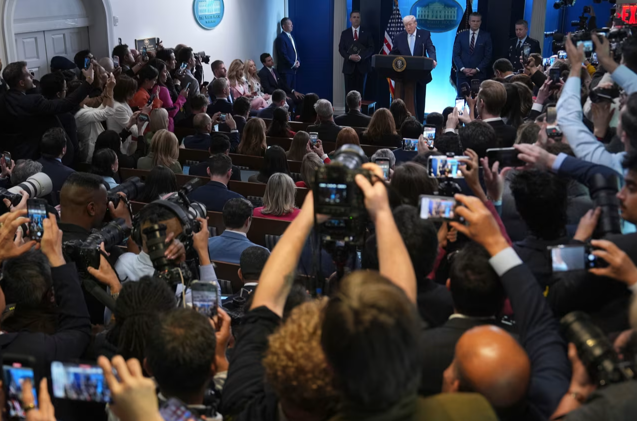 △当地时间4月6日,美国总统特朗普在白宫举行新闻发布会