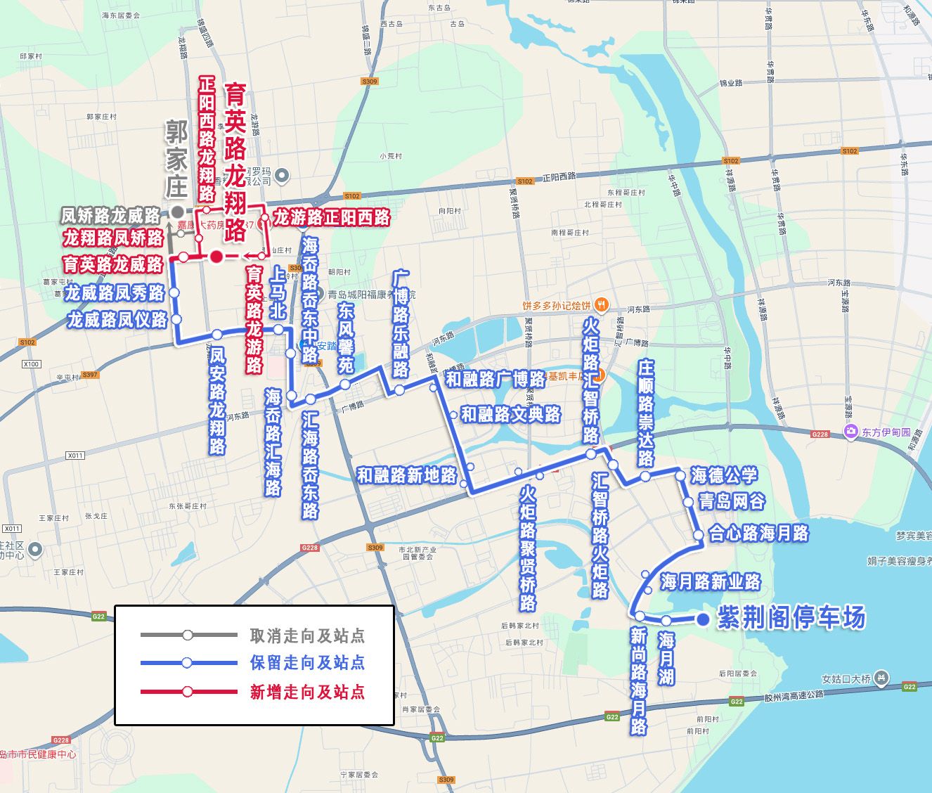 主站紫荆阁停车场,副站由郭家庄调整为育英路龙翔路,调整后为:紫荆阁停车场—育英路龙翔路。