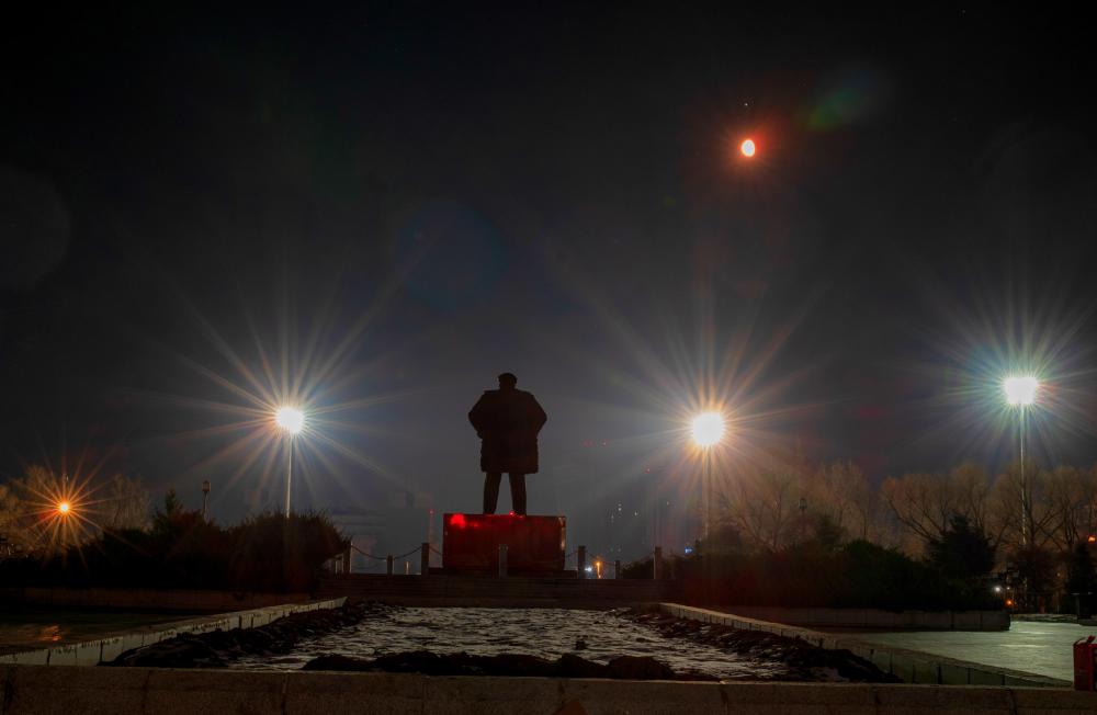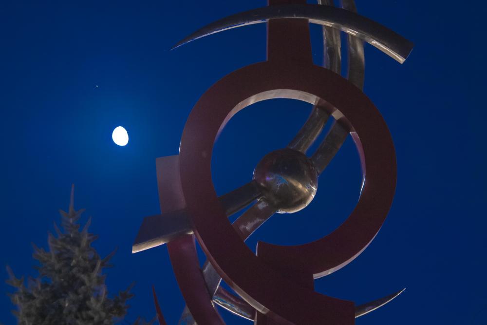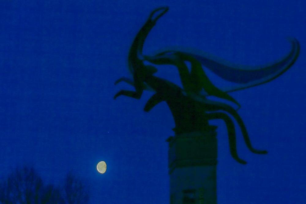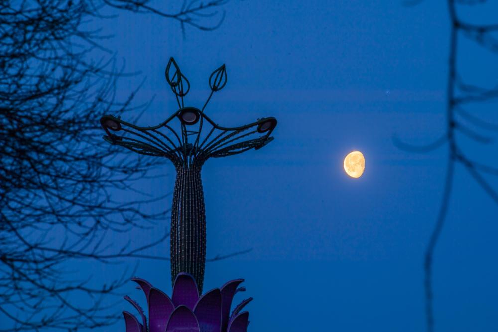 这是4月7日凌晨在黑龙江省大庆市的铁人广场拍摄的心宿二伴月。新华社发(刘崴摄)