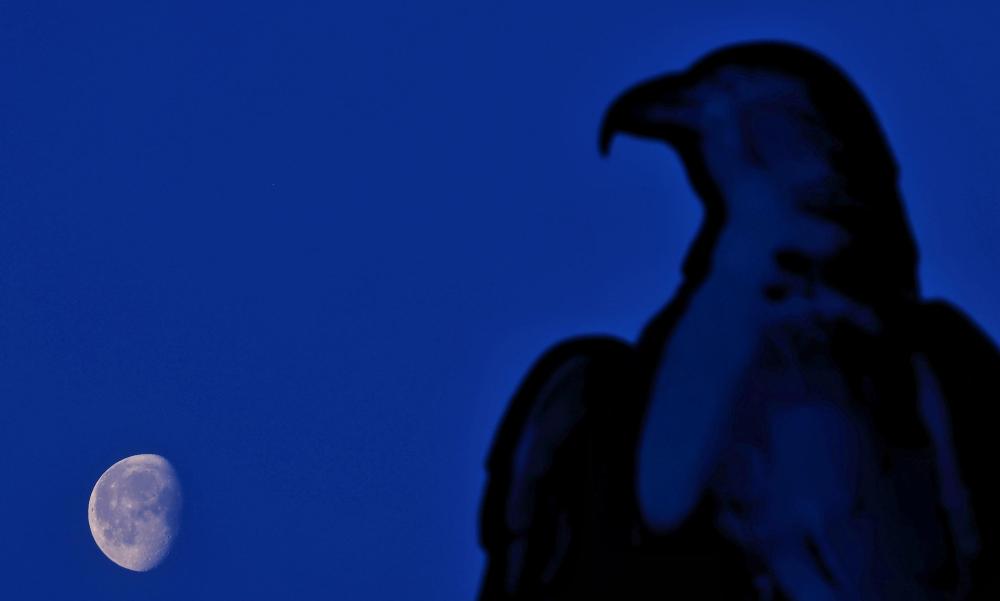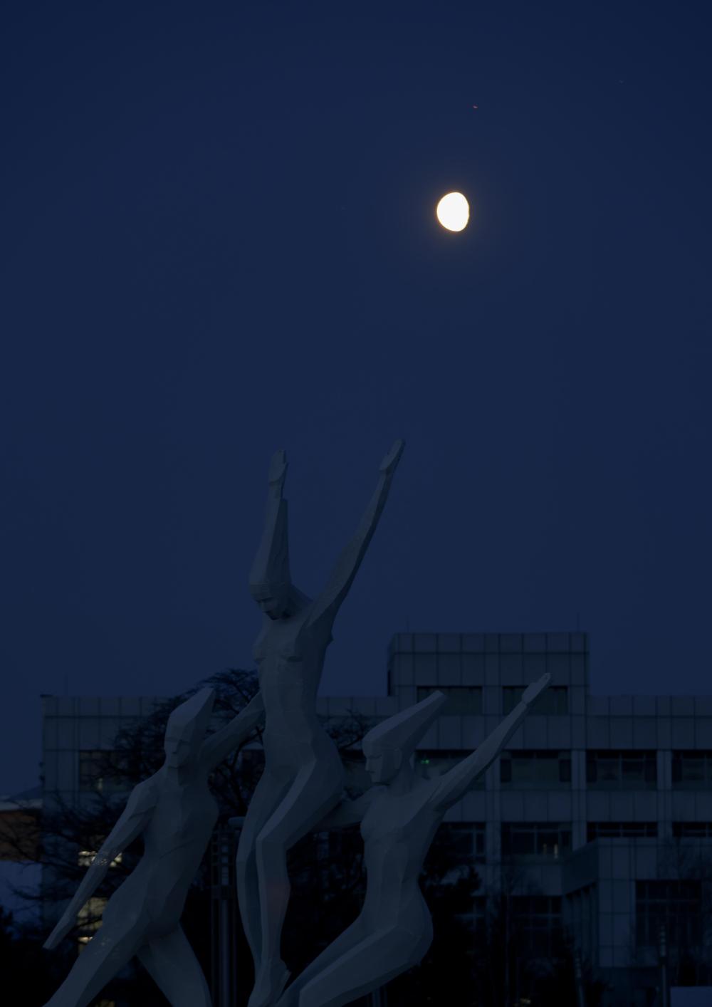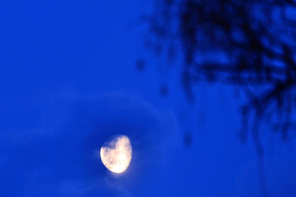 与一轮银白色的亏凸月