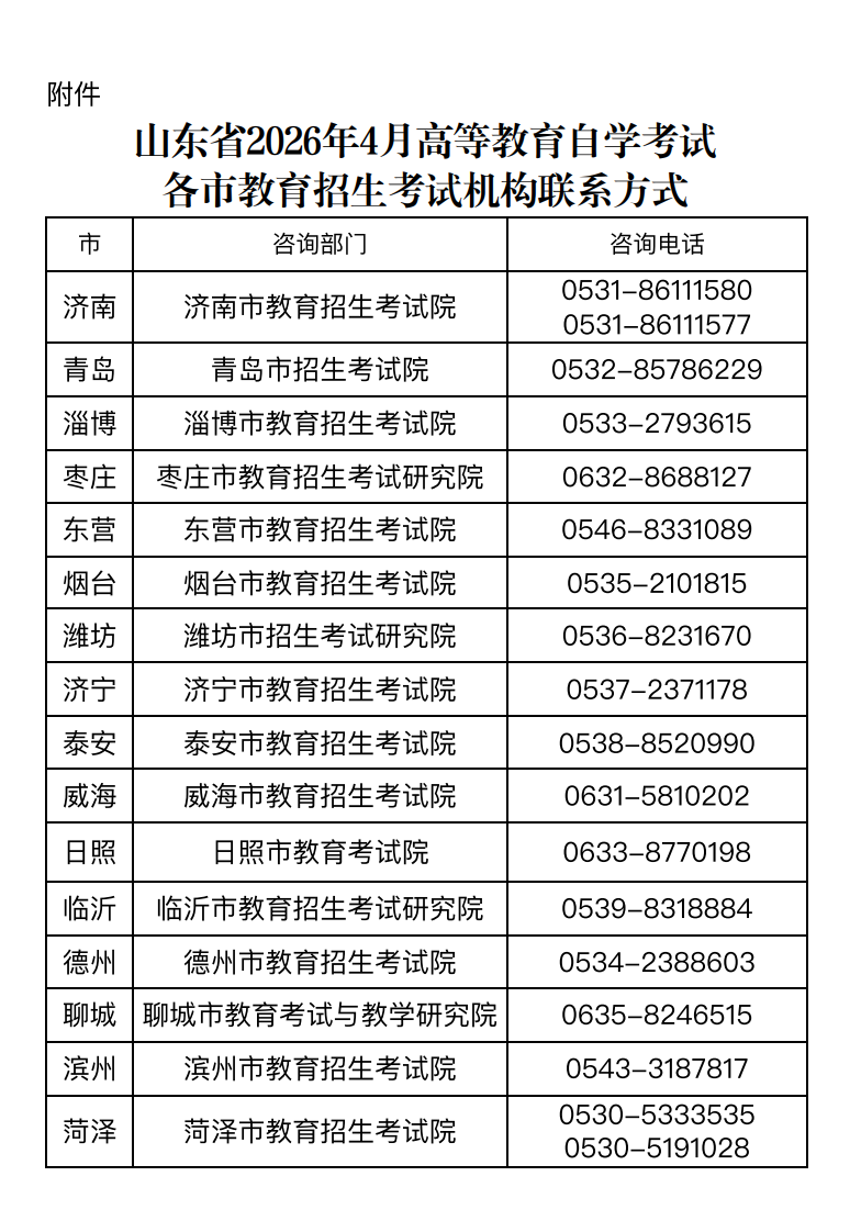 每逢考试,社会上总有不法分子通过散布“助考”等各种方式和手段进行诈骗犯罪活动,希望广大考生提高警惕,坚决不相信、不参与“助考”等违法犯罪活动。请广大考生讲诚信、守纪律,自觉维护国家教育考试的公平正义,共同营造风清气正的考试环境。考试期间,如发现涉考违法违规行为,请及时向公安机关报警并向我院举报,举报电话:0531-86162757,邮箱:jubao@sdzk.cn。考务事项请咨询各市教育招生考试机构(电话见附件),省教育招生考试院考务咨询电话:0531-82598728。
