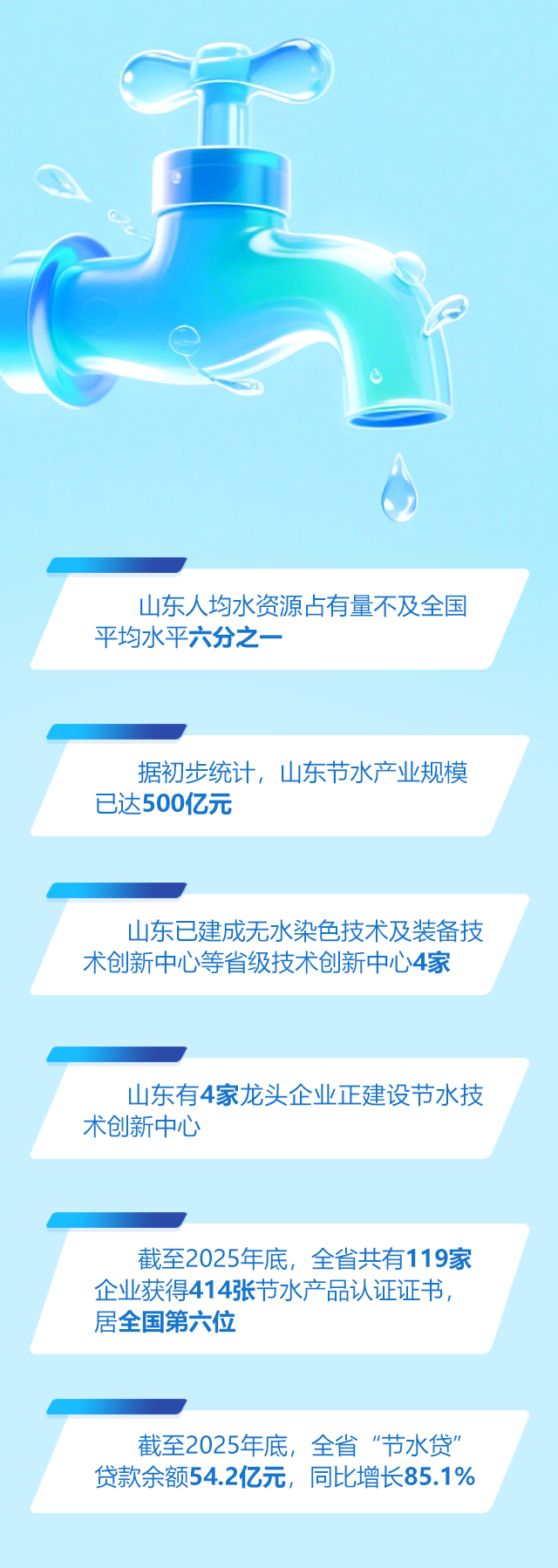 省级层面,山东先后出台节水产业发展规划和实施意见,从投资补助、技术推广、税费减免等方面给予支持。金融活水也在精准滴灌,截至2025年底,全省“节水贷”贷款余额54.2亿元,同比增长85.1%。