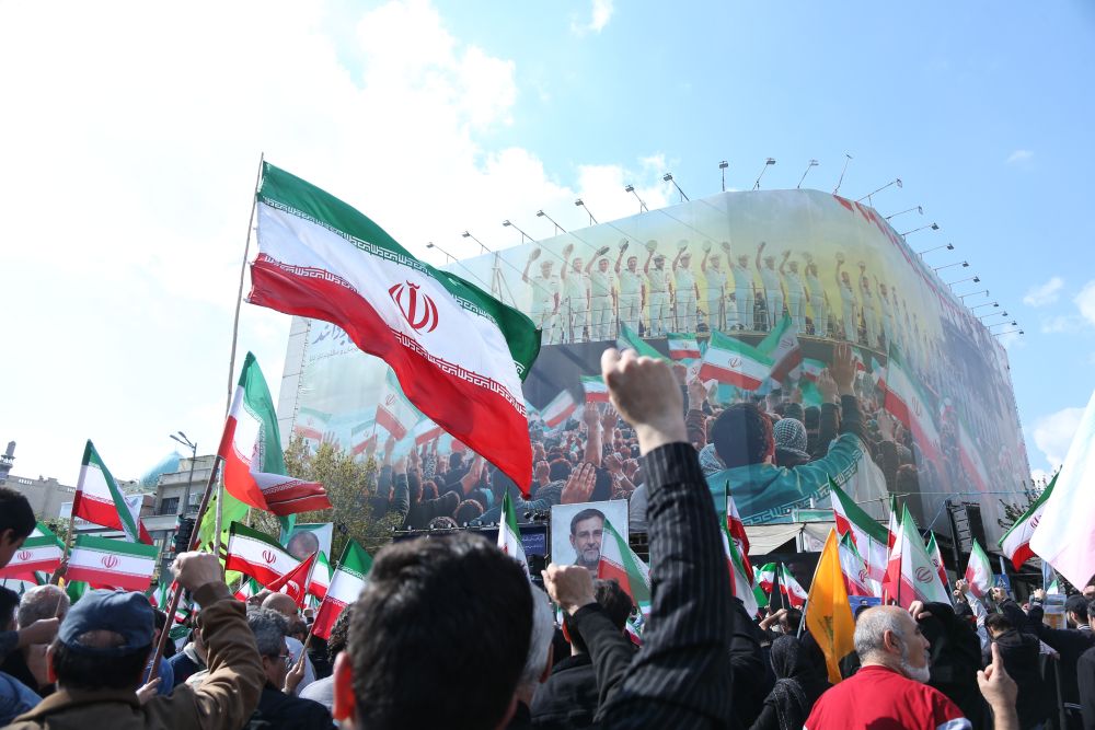4月1日,在伊朗首都德黑兰革命广场,民众参加为伊朗伊斯兰革命卫队海军司令坦格西里、伊朗武装部队总参谋长顾问贾姆希德·埃哈基及伊朗武装部队军事人员举行的告别仪式。新华社记者沙达提摄