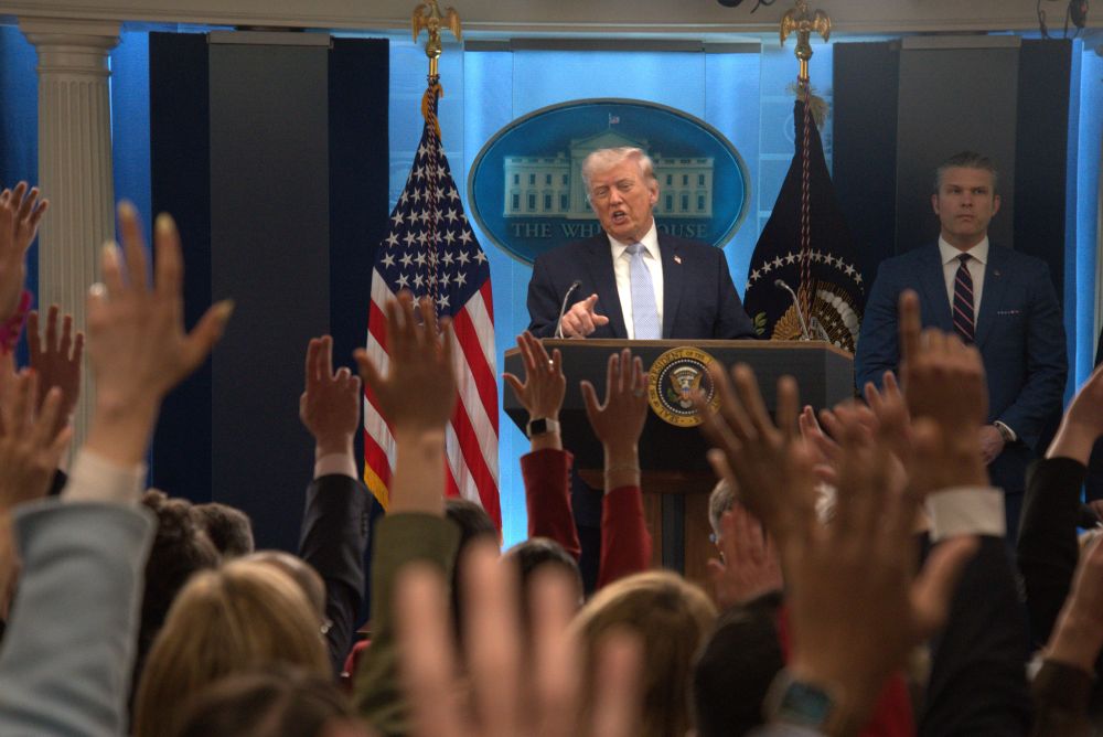 特朗普6日在白宫举行的新闻发布会上称,对伊朗的战事是即将升级还是接近结束,取决于伊朗如何回应他设定的“最后期限”。新华社发(李源清摄)
