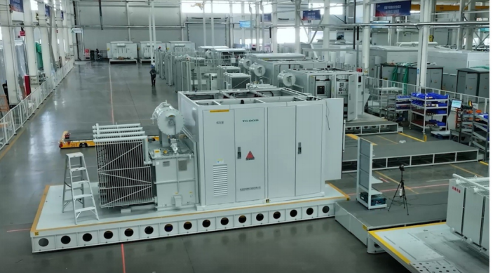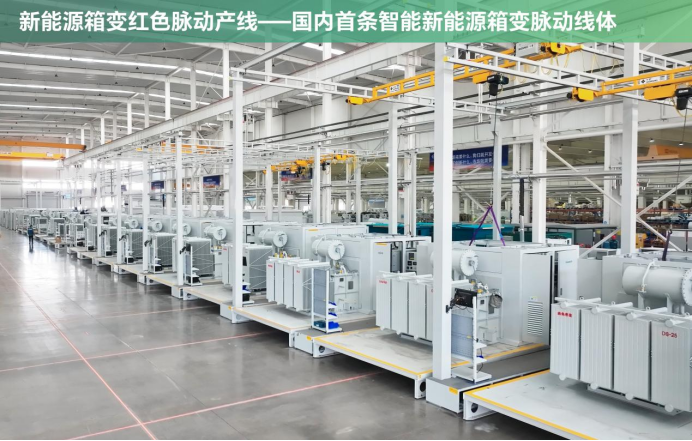 在生产作业环节,打造国内首条智能新能源箱变脉动线体,将产品模块化设计与MES系统、WMS系统无缝对接,动态优化排产,平均每15分钟下线一台箱变产品,并实现多品种混线快速换产。