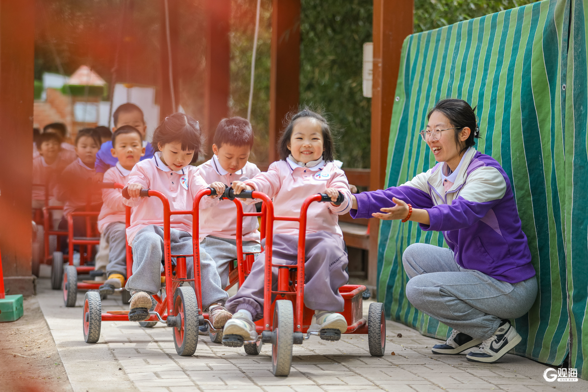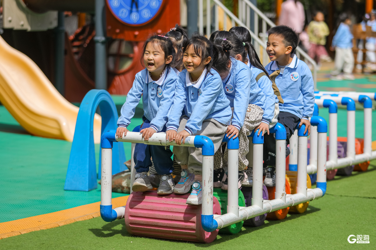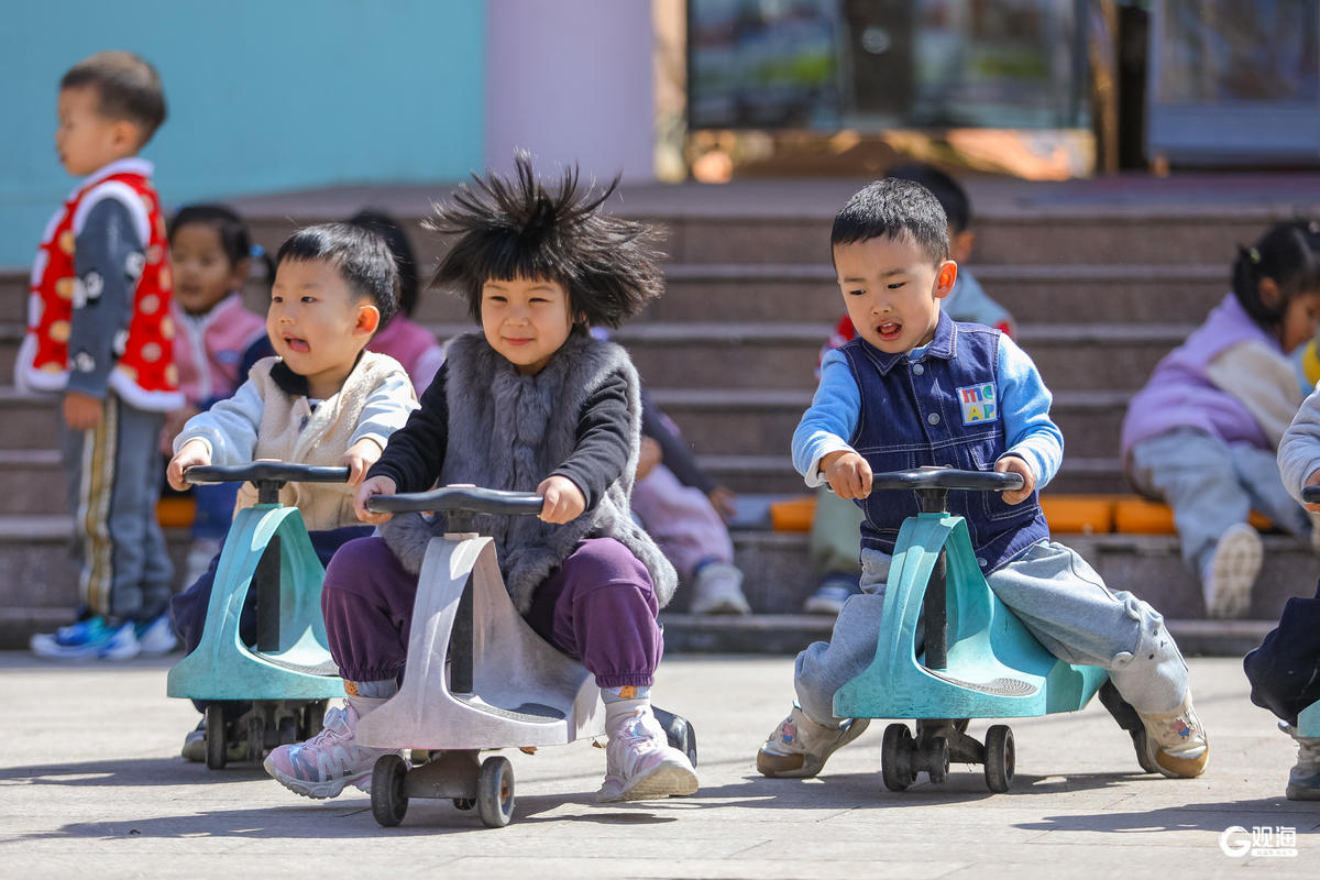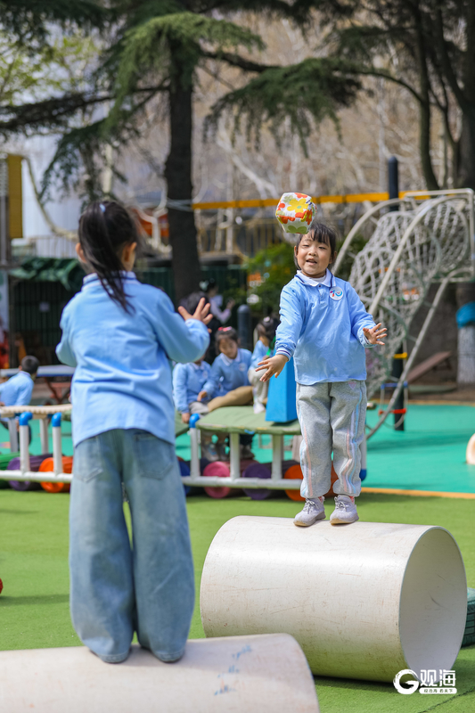 青岛日报社/观海新闻4月8日讯 今天,在青岛市李沧区夏庄路幼儿园,小朋友们参与戏水、平衡车、滚筒协力车等户外项目,在游戏中收获快乐与成长,尽享春日美好。