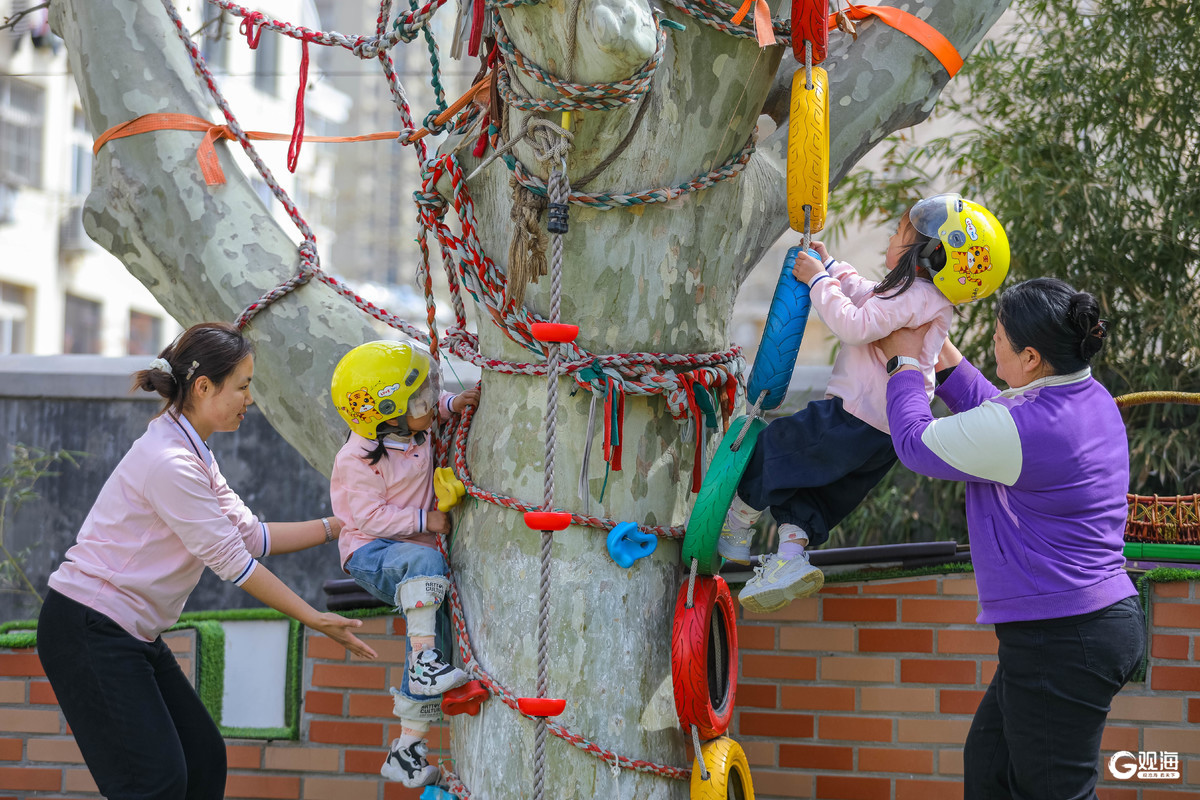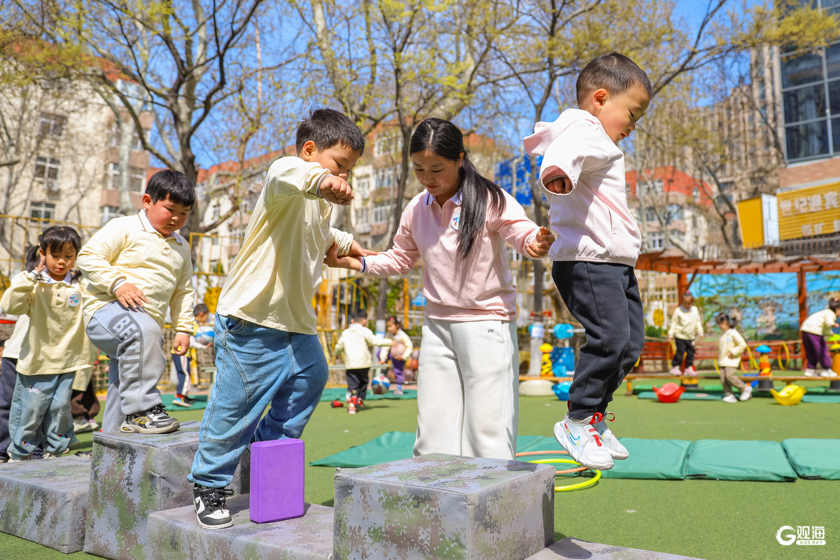 近年来,李沧区夏庄路幼儿园立足幼儿年龄特点,因地制宜打造了4个运动风格各异院落与18个户外体育游戏场域,并开发了30余项户外项目,让孩子们在自主游戏中锻炼平衡、协调、力量等综合体能,增强体质,收获快乐。(青岛日报/观海新闻记者 周伟 通讯员 张鹰 摄影报道)