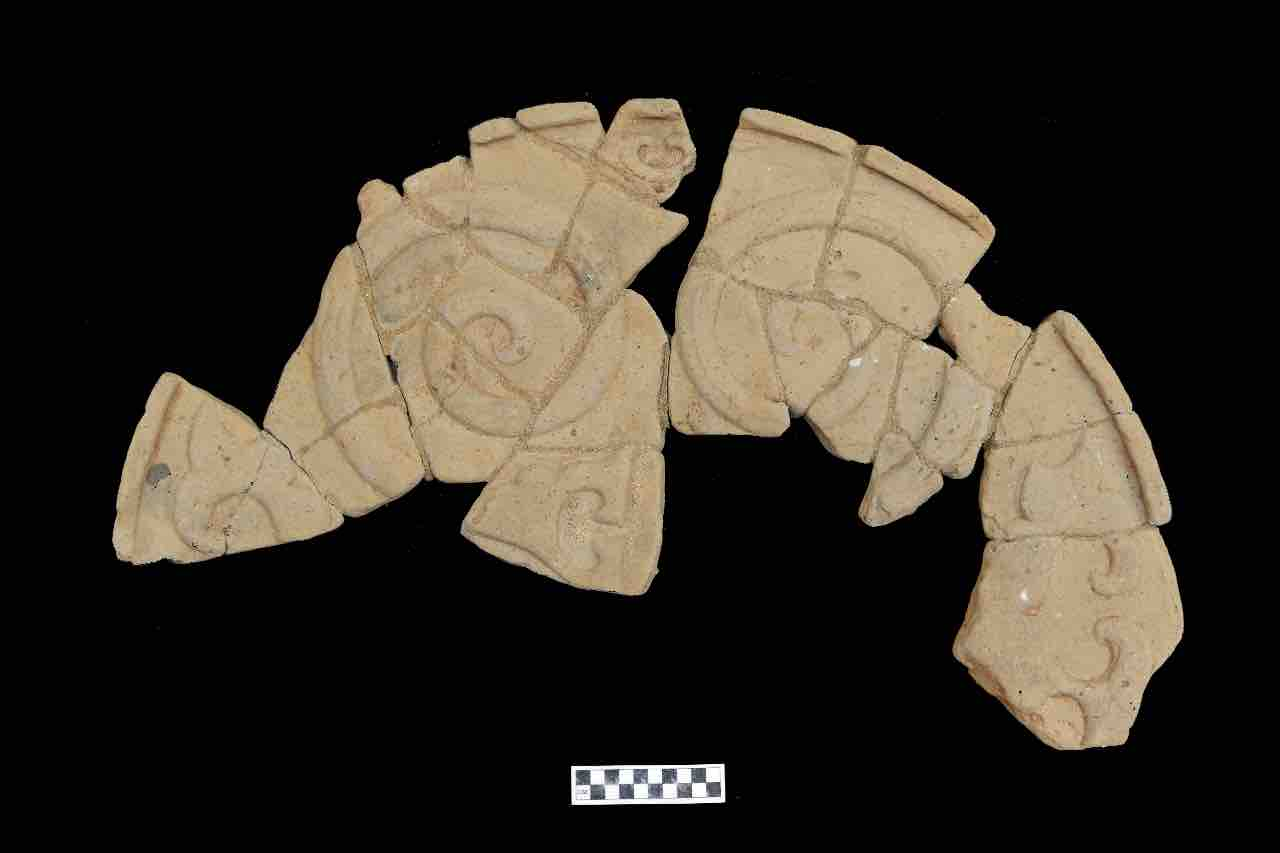 窑址出土了大量板瓦、筒瓦、瓦当、砖及排水管道等建筑构件,其形制与山顶建筑秦代遗物完全一致,确证这批陶窑是专为琅琊台高等级建筑烧制建材的官方窑口。其中出土的夔纹大半圆瓦当尤为珍贵,当面图案与陕西秦始皇陵、栎阳城、辽宁姜女石秦行宫等秦代最高等级建筑遗址出土同类器高度一致,是秦代高等级建筑的标准器,最大一件复原直径约80厘米,为目前全国发现的最大夔纹瓦当之一。