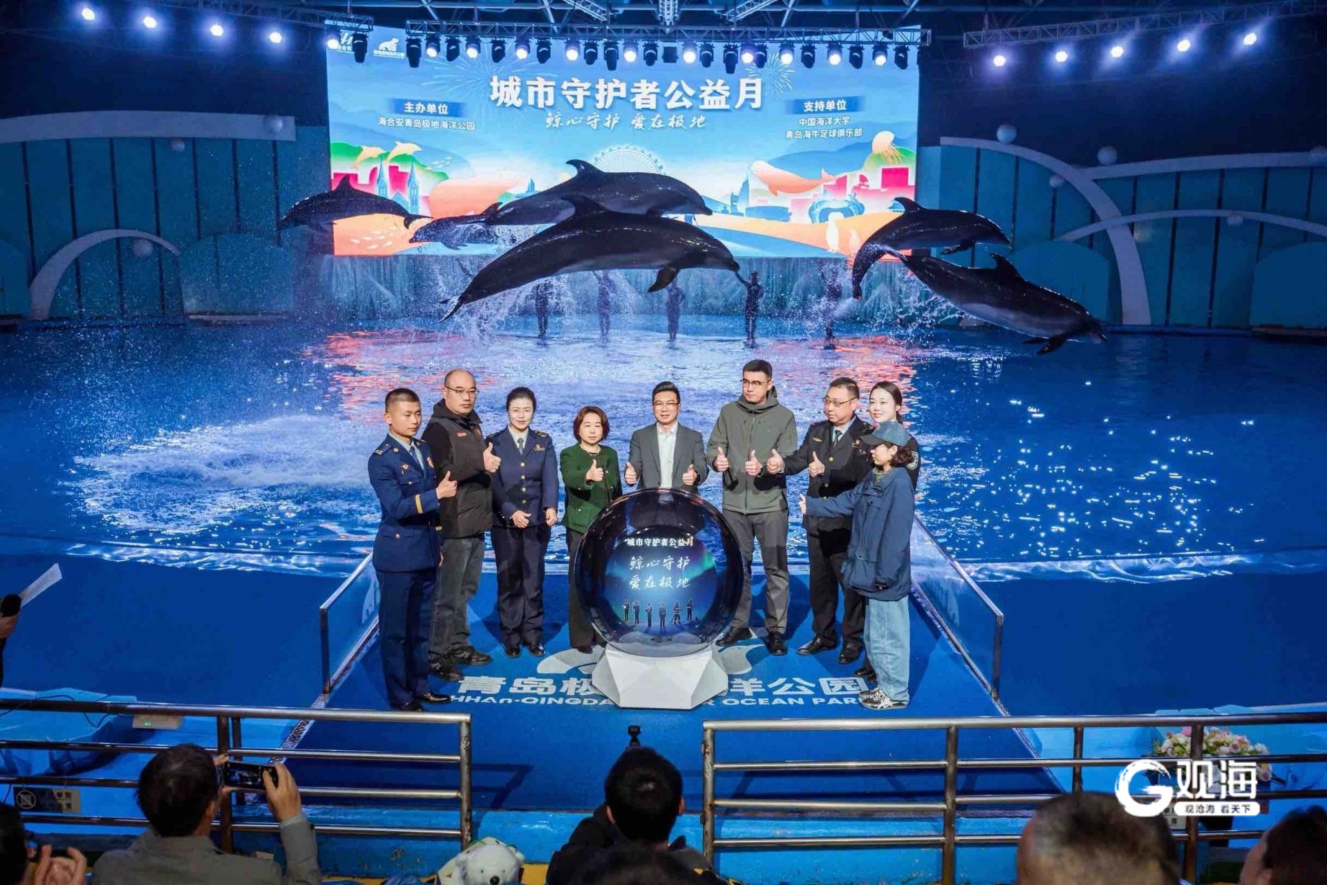 青岛日报社/观海新闻4月10日讯 今天上午,在崂山区相关政府部门、中国海洋大学、青岛海牛足球俱乐部及多位城市守护者代表共同见证下,海合安青岛极地海洋公园正式启动“城市守护者公益月”。正值开园二十周年,公园正式宣布面向警务人员等六类城市一线工作者,推出专项免票及家属优惠政策,同时与中国海洋大学深化科普战略合作,探索“文旅+高校+体育”的跨界公益模式。