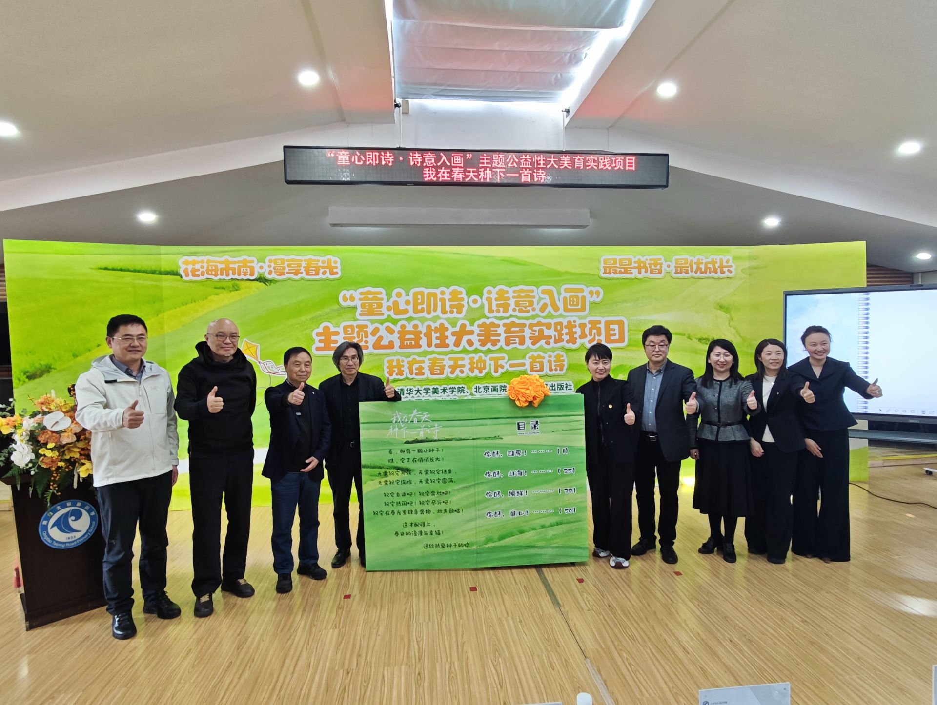 青岛日报社/观海新闻4月10日讯 10日,市南区“最是书香最优成长”特色活动暨青岛太平路小学“我在春天种下一首诗”书香校园行活动启幕,这场以诗为媒,融展、演、创、学于一体的沉浸式书香盛宴,将童诗创作与美育实践深度融合,在海边校园勾勒出一幅“诗润童心、美伴成长”的生动画卷,成为市南区深化大阅读教育、打造高品质书香校园的精彩实践。
