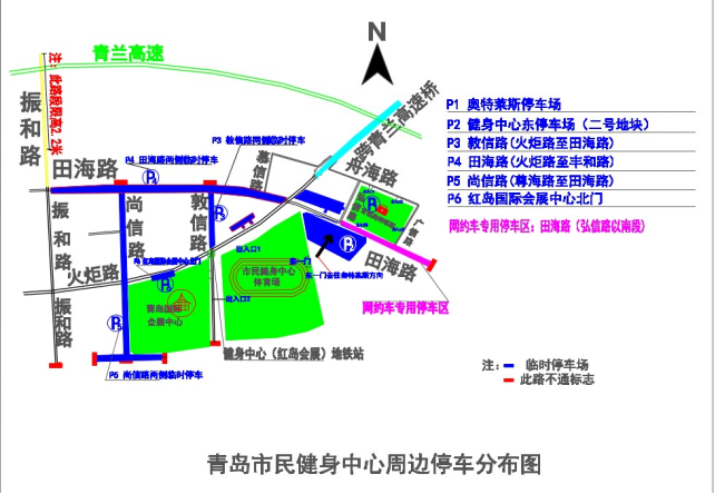 (一)出发地—胶州湾大桥—华中路—火炬路—市民健身中心