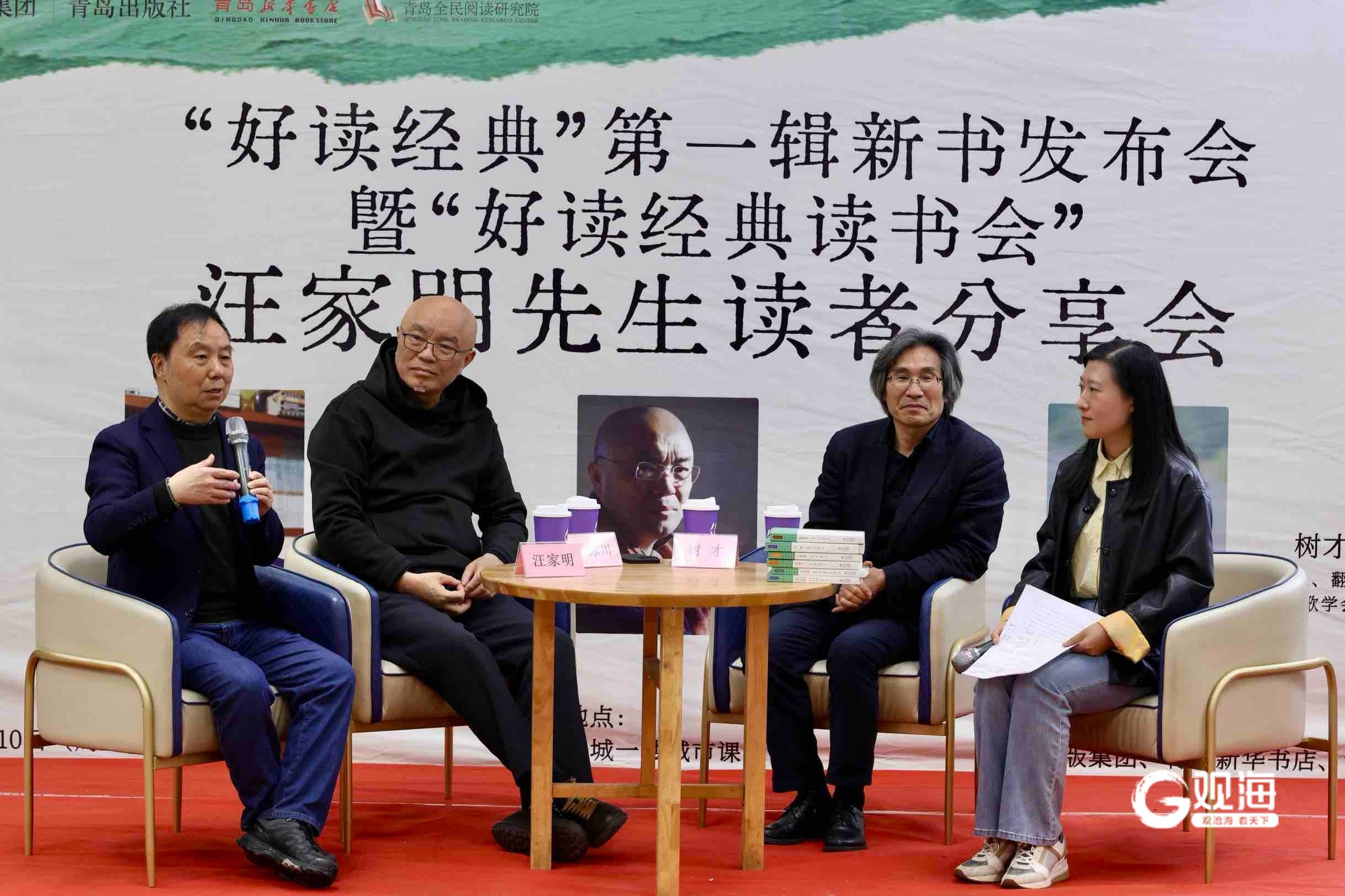 青岛日报社/观海新闻4月11日讯 4月10日,“好读经典”第一辑新书发布会暨“好读经典读书会”在青岛书城举行。青岛籍作家、出版人汪家明,艺术家冷冰川,诗人、翻译家树才等嘉宾齐聚一堂,与读者分享经典阅读的魅力,共话书香与乡情。活动由青岛出版集团主办。