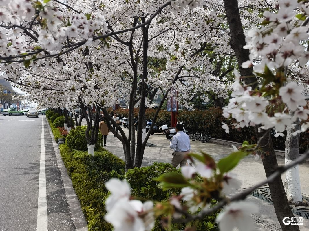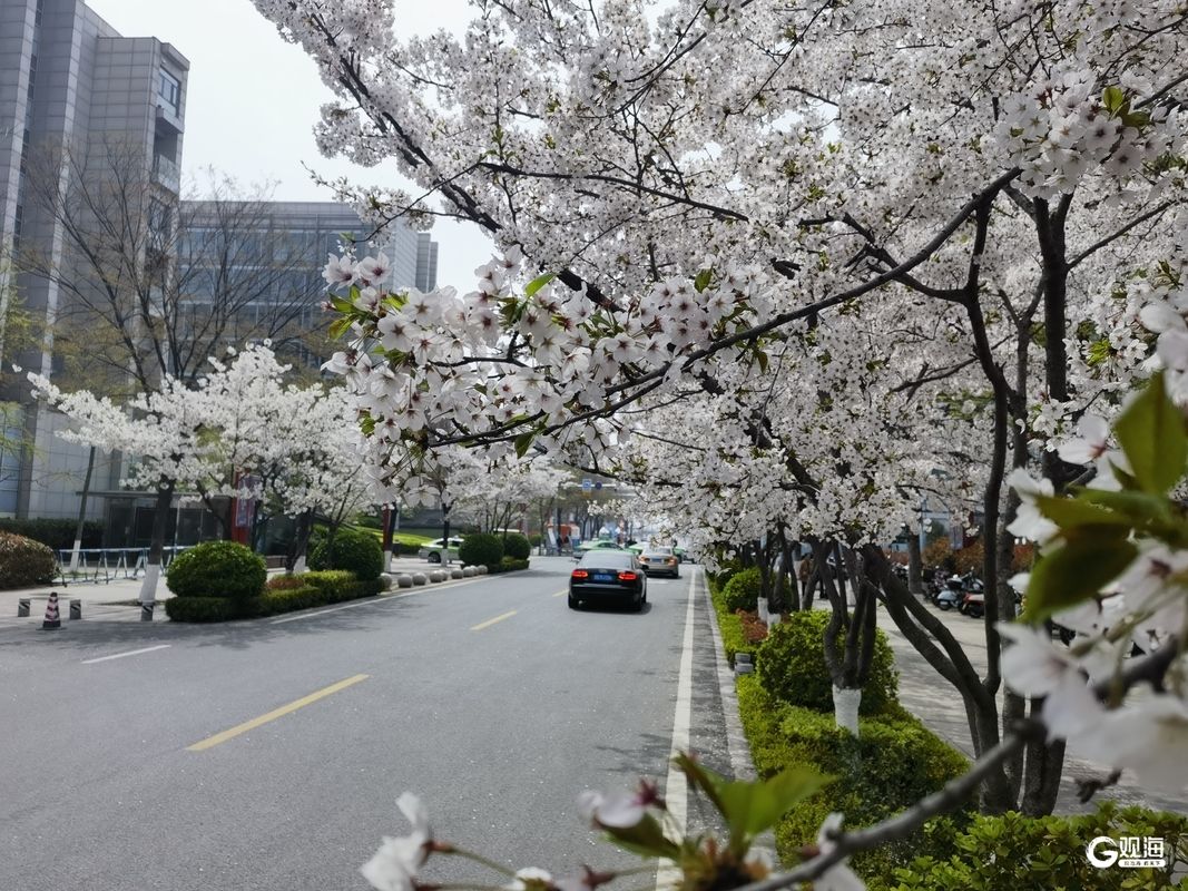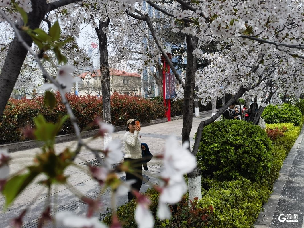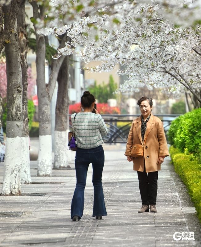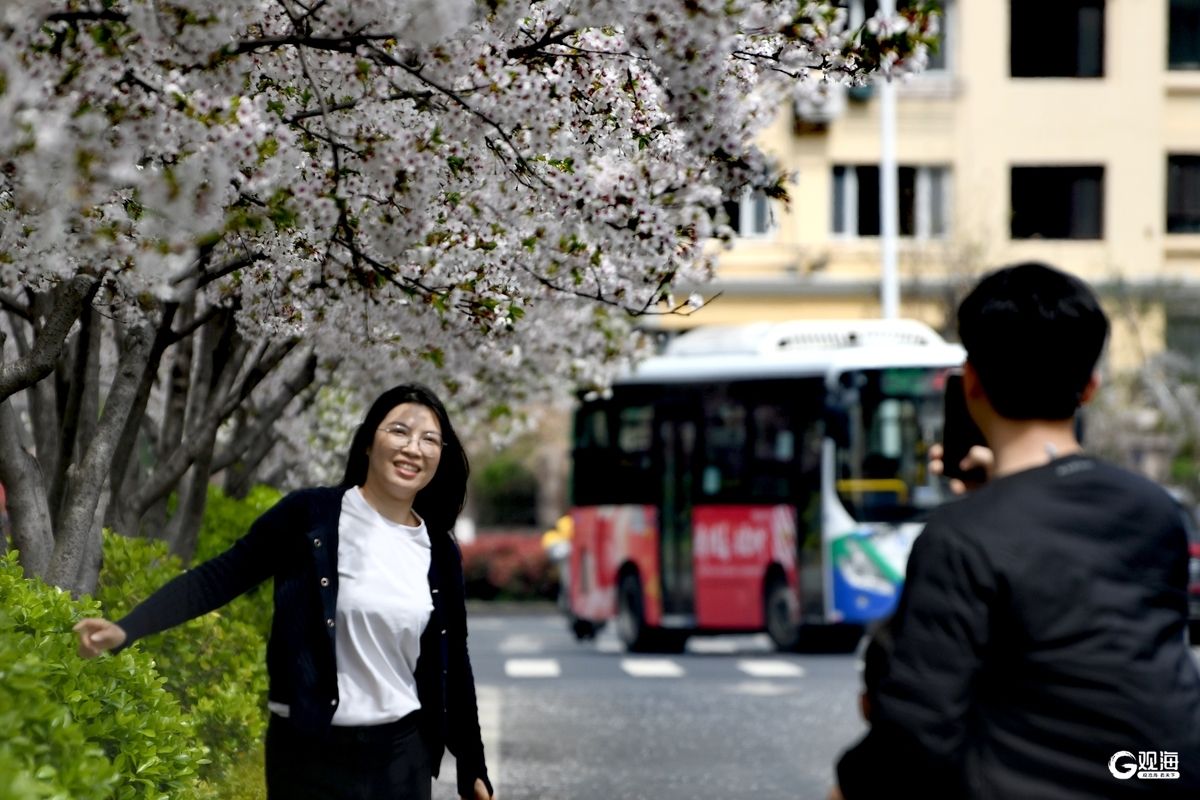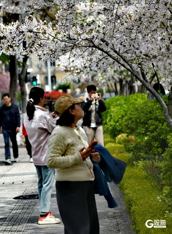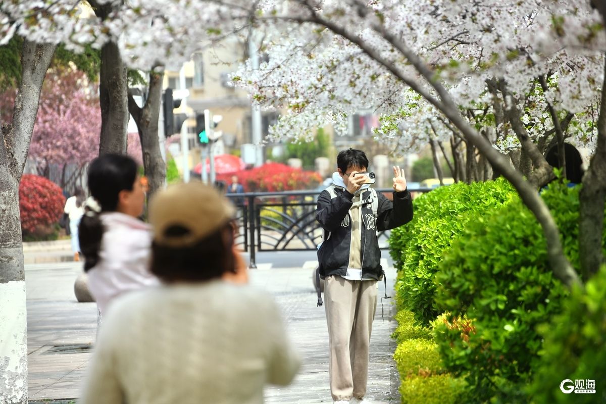 作为奥帆中心周边的特色赏花地,新会路的樱花与白色雕塑、现代建筑相映成趣。清晨薄雾中,花枝在微风中轻颤;午后阳光下,光影透过花瓣洒在路面;黄昏时分,晚霞为花海镀上一层金边,每一刻都藏着不同的诗意。不少市民带着相机驻足拍摄,孩子们在花瓣铺就的“地毯”上嬉戏,将春日的惬意定格。(青岛日报/观海新闻记者 王雷 文/图)