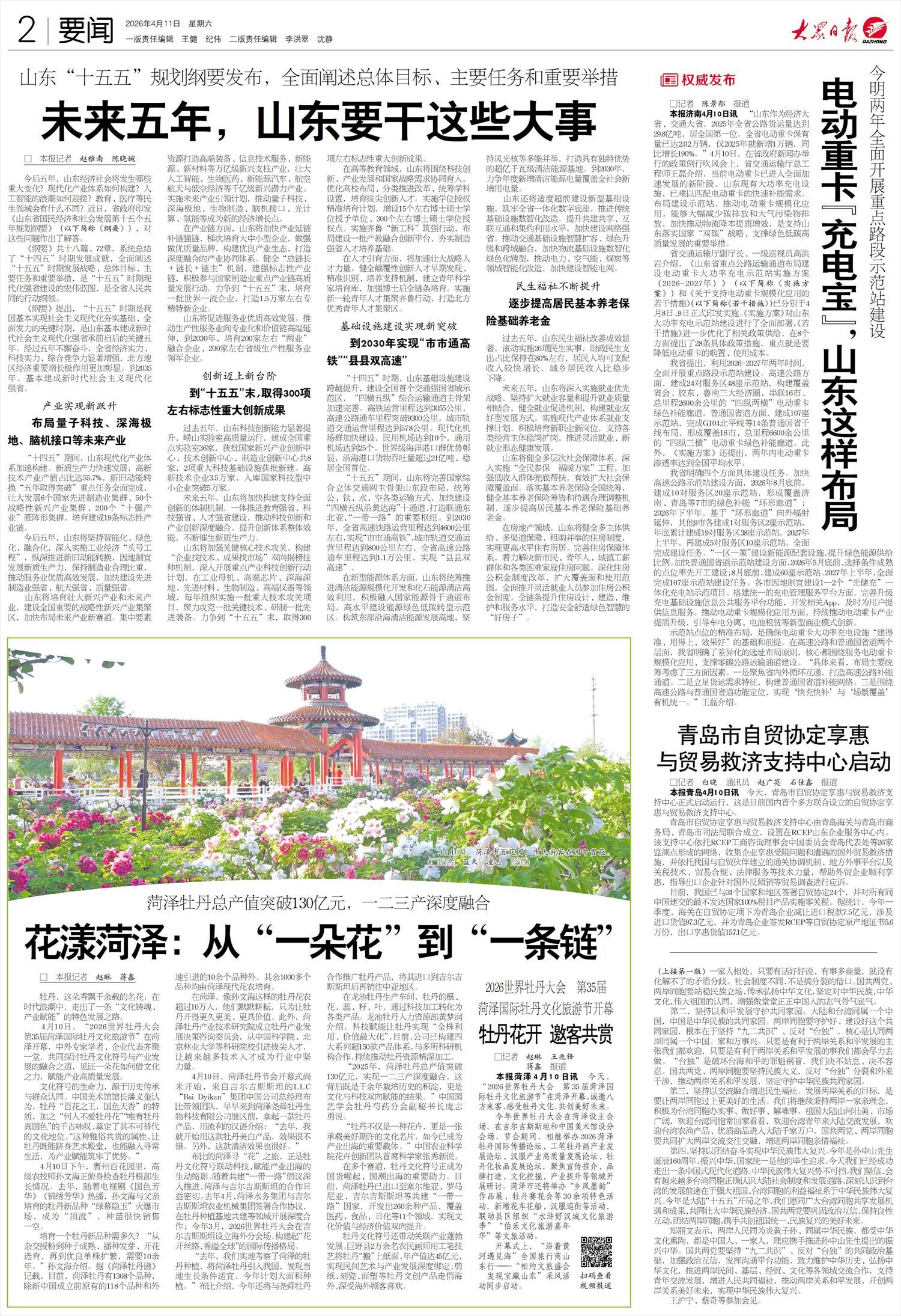 本报济南4月10日讯 “山东作为经济大省、交通大省,2025年全省公路货运量达到29.8亿吨,居全国第一位。全省电动重卡保有量已达2.02万辆,仅2025年就新增1万辆,同比增长190%。”4月10日,在省政府新闻办举行的政策例行吹风会上,省交通运输厅总工程师王磊介绍,当前电动重卡已进入全面加速发展的新阶段,山东现有大功率充电设施,已难以匹配电动重卡的快速补能需求。布局建设示范站,推动电动重卡规模化应用,能够大幅减少碳排放和大气污染物排放,加快推动物流降本提质增效,是支持山东落实国家“双碳”战略、支撑绿色低碳高质量发展的重要举措。