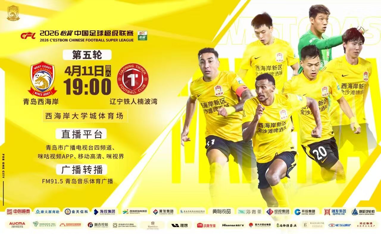 青岛西海岸队主场战平辽宁铁人队,观海新闻邀您为球队和球员打分→ 2026-04-11 21:00 青岛日报社/观海新闻 0 4月11日晚,在2026赛季中国足球超级联赛第5轮的一场焦点战中,青岛西海岸队主场1:1战平辽宁铁人队,目前战绩为1胜1平3负。观海新闻诚邀您为西海岸队和西海岸队球员打分。 点击图片或这里,为球员和球队打分