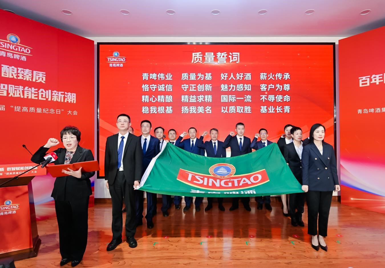 质量之魂存于匠心,消费体验才能“质”感丰盈。4月10日,青岛啤酒举办第48届提高质量纪念日大会,当天,青岛啤酒集团领导、总部职能部门负责人、本埠工厂总经理、全国各工厂酿酒师以及魅力感知质量链上的代表,齐聚青岛啤酒的发源地登州路56号,通过主题宣贯、质量宣誓、质量目标责任书签署等活动,持续深化全员全链品质匠心,持“质”以恒为满足消费者需求再聚新动能。